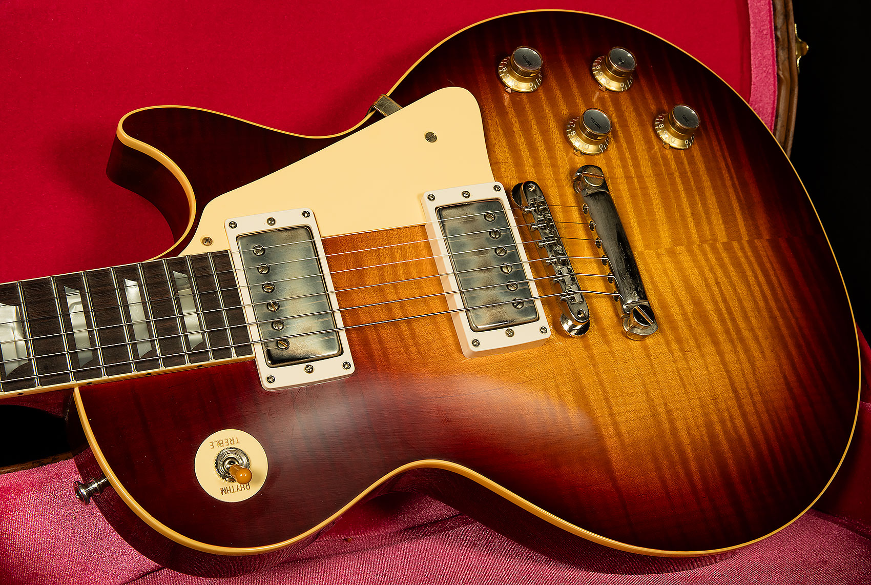 Gibson's original "Burst" Les Pauls are perhaps the most sought-after vintage guitars of all time. They are renowned for their beauty and snowflake-like uniqueness. After all, each one had a different level of flame in the maple top, and each finish received a different amount of UV light, which drastically changes the finish. So, no two are alike, and that's the beauty of the burst.