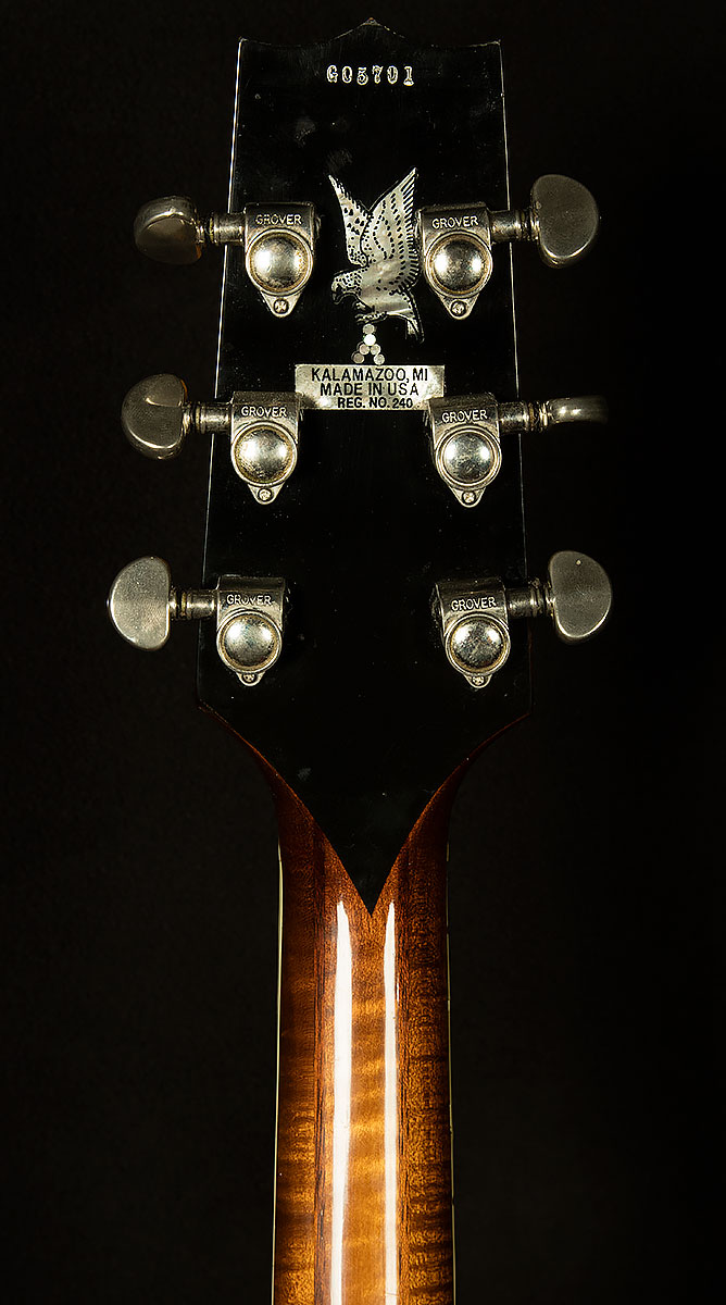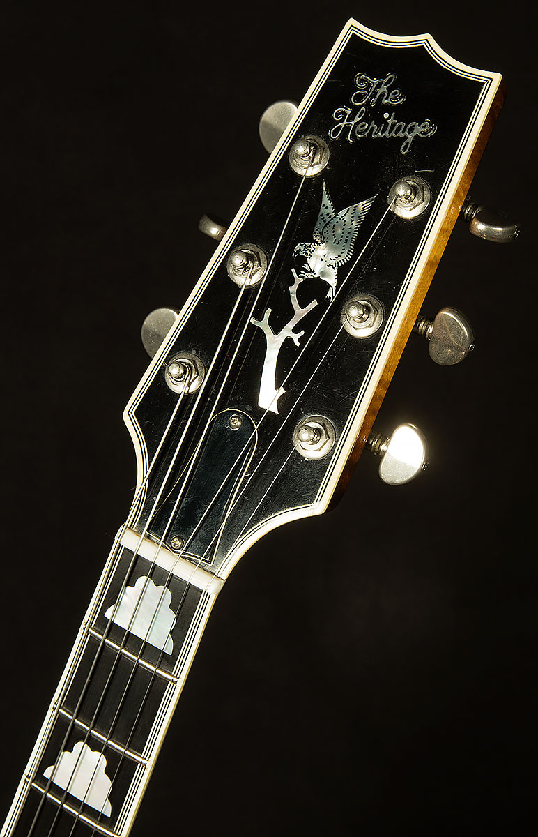This Heritage Golden Eagle is in fantastic shape! The frets are original, and they show very little wear, as they measure .103 inches by .040 inches. There are light signs of wear from normal use like small dings, nicks, and scratches scattered throughout the finish, and there is checking in the typical places: around the headstock logo, along the binding, and by the fret ends. The hardware has also tarnished somewhat--a common occurrence. There are a few repaired top cracks (the most notable of which is the center seam under the tailpiece), but the guitar is fully structurally sound and has a clean bill of health. Finally, the pickup is original and its output measures 4.35k ohms. It comes with a non-original Gibson USA hardshell case, too!