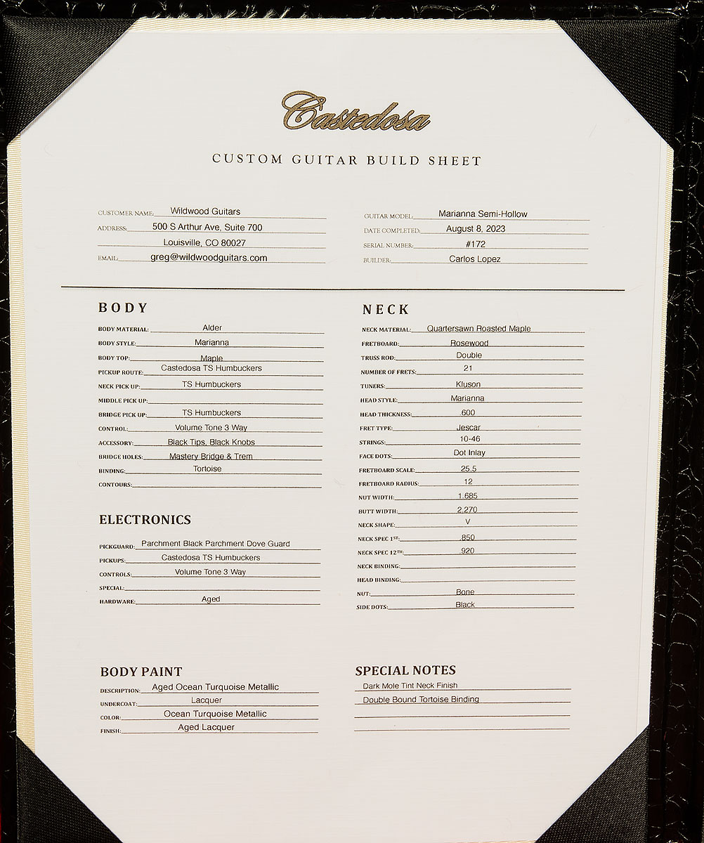 | Case Candy | Castedosa Guitars COA and Custom Guitar Buildsheet |