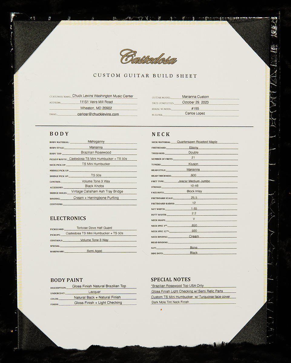 Case CandyCastedosa Guitars COA and Custom Guitar Buildsheet