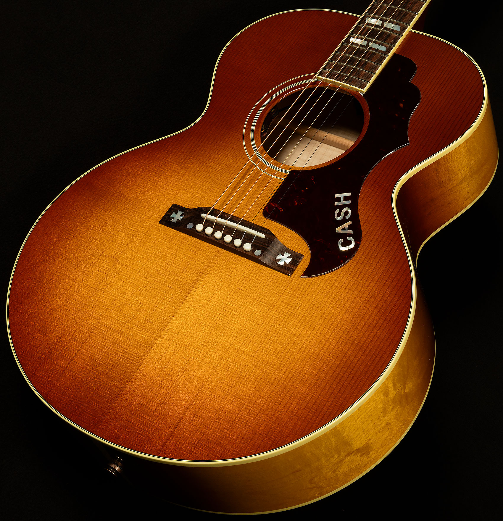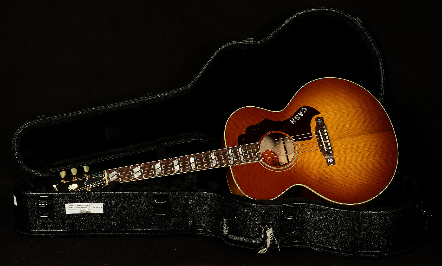 Beyond that, it's also quite comfortable to play. It has a slightly thinner than normal body, and a super-fast SlimTaper neck profile, and both features compel you to play for hours and hours. Looks are important, too, and this guitar doesn't disappoint in that regard either. Mother-of-pearl inlays on the fretboard and headstock, the special Cash logo designed by Roseanne and her husband, gold hardware, and a stunning heritage cherry sunburst finish ensure that the Roseanne Cash J-185 stands out in a crowd. To top it off, it comes with an LR Baggs VTC pickup, so it's ready to rock the stage.