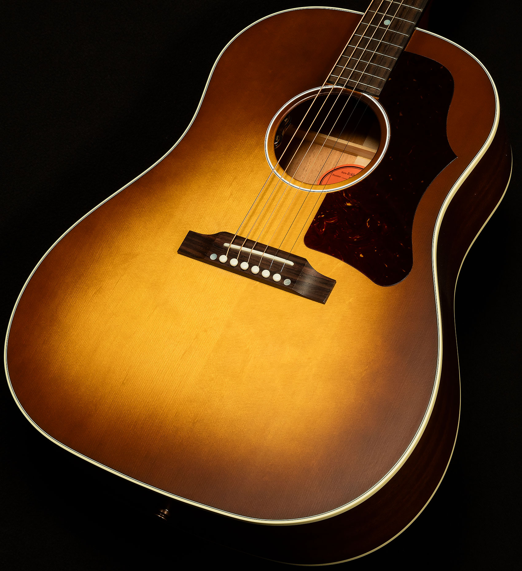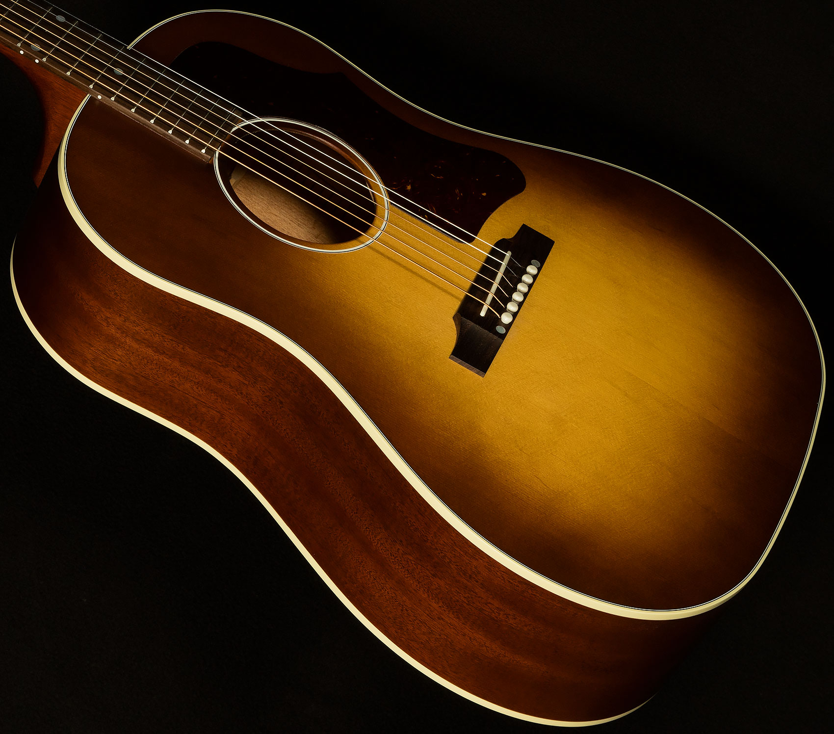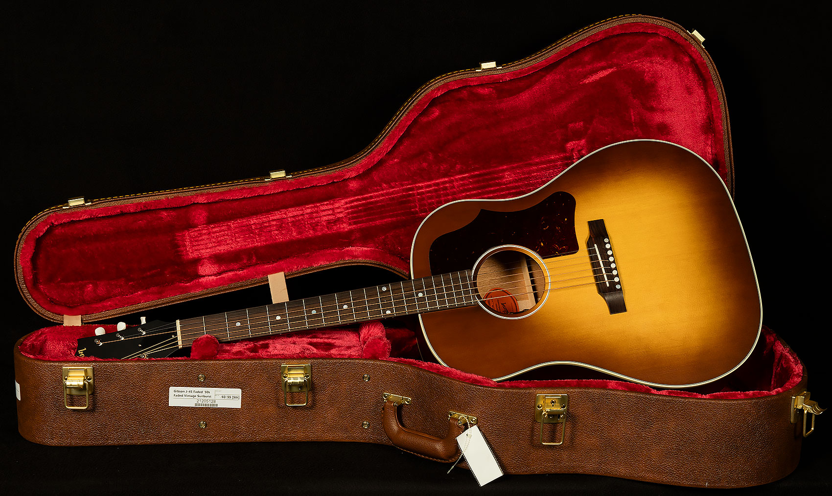 The J-45 is Gibson's best-selling acoustic of all time. Nicknamed "The Workhorse" and first introduced in 1942, this iconic acoustic has become the cornerstone of its round-shoulder, dreadnought line. World-renowned for its full, balanced expression, warm bass, and excellent projection, the J-45 has been refined to carry this legacy to new heights. The Gibson J-45 50s Faded delivers full-spectrum sound with incredible dynamic range, warm mids, and tight, punchy bass. Now available with a faded satin nitrocellulose lacquer finish that accentuates the guitar's vintage vibe and equipped with a modern LR Baggs pickup and electronics package for studio and stage use. A hardshell case is also included.