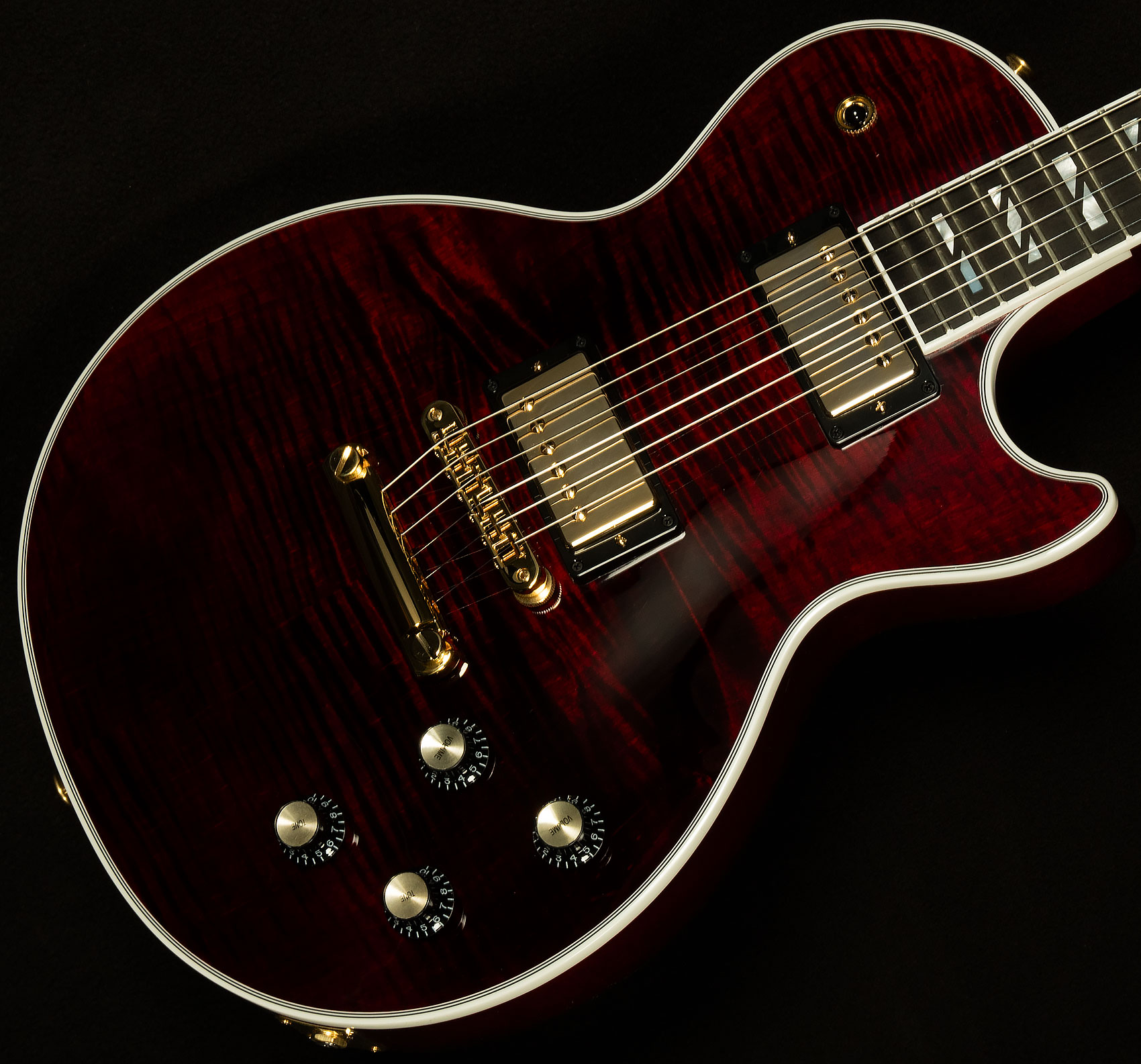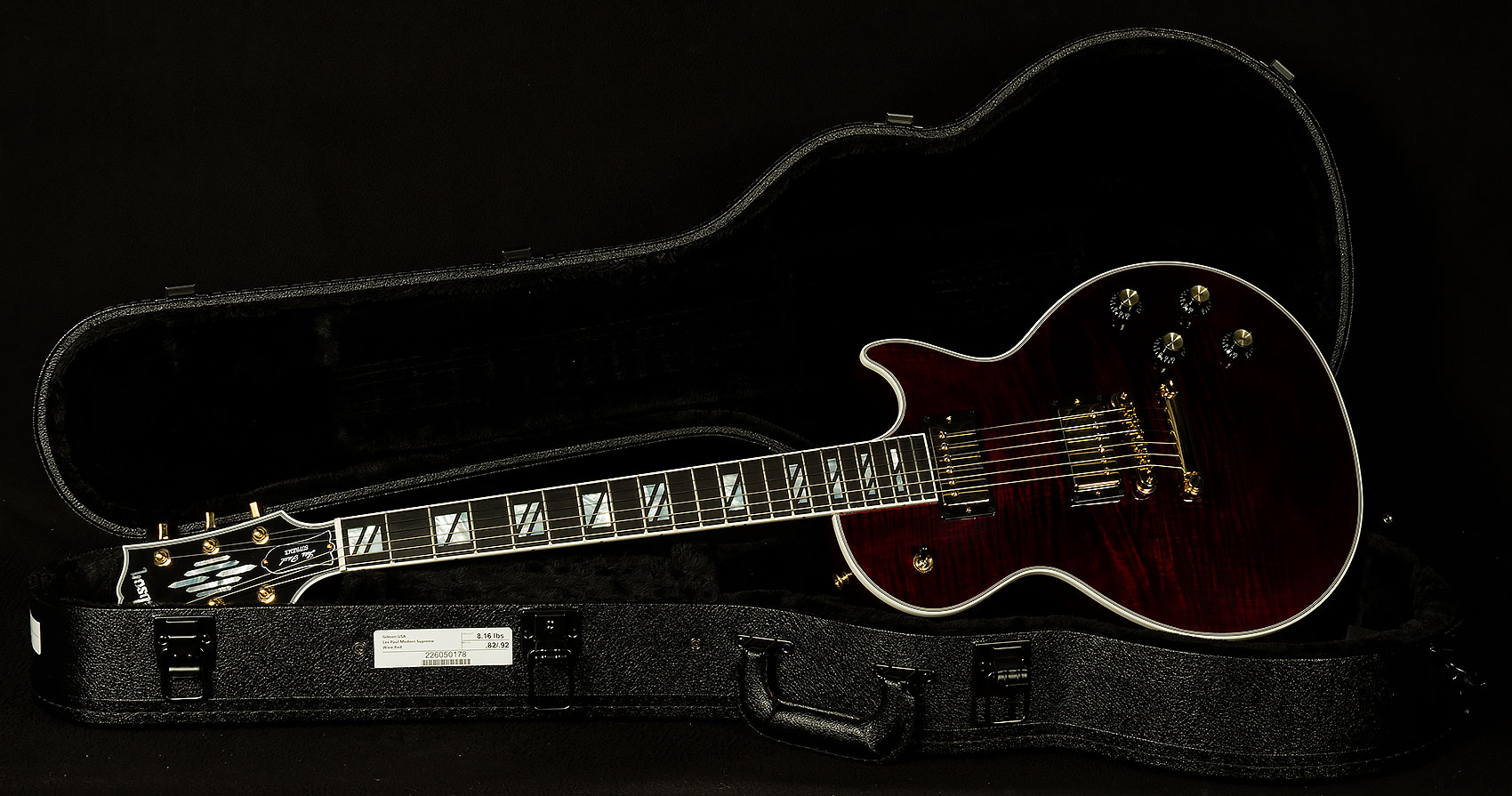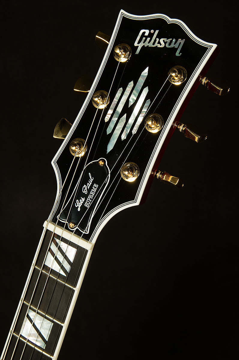 Gibson is excited to announce the return of the Les Paul Supreme. With a refreshed feature set, it is bound to overshadow everything else in sight and be one of the most exciting new releases of the year. It features a beautiful AAA-figured maple top on a mahogany body with Ultra-Modern Weight Relief. The mahogany neck has an ebony fretboard with a compound radius and Super Split Block mother-of-pearl inlays. The neck has a Modern Contoured Heel for exceptional upper fret access, and the headstock is adorned with a striking new mother-of-pearl inlay inspired by a design from the 1940s that was discovered in the Gibson archives. The Burstbucker Pro and Burstbucker Pro + pickups are paired with push/pull Volume and Tone potentiometers for flexible coil tap, phase, and Pure Bypass switching. The three gorgeous finishes are elegantly highlighted with gold hardware, making this not only a great-sounding and highly flexible instrument but also an exceptionally beautiful-looking modern rock machine. A hardshell case is also included.