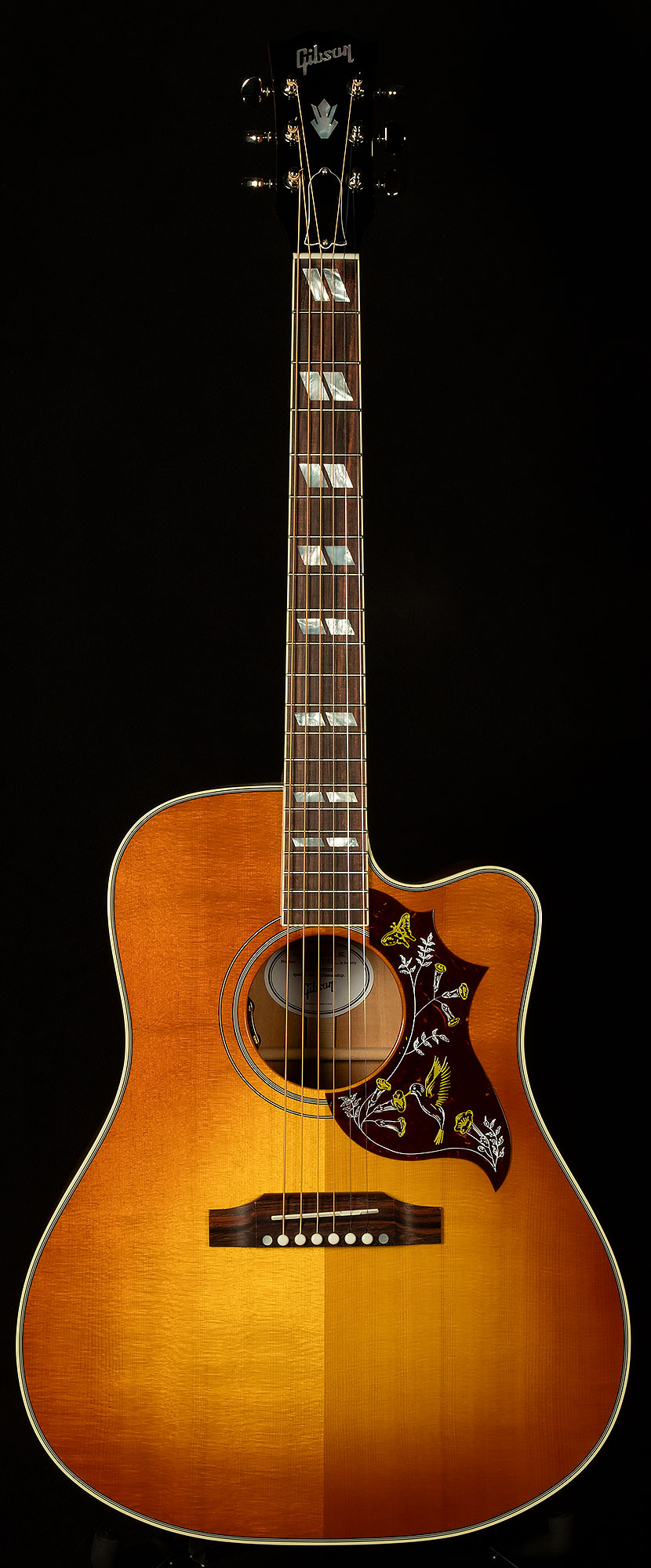 More importantly, though, the Hummingbird has a mysterious ability to draw additional creativity out of players and get them to try things they normally wouldn’t. For instance, did you know that the distorted guitar sound on Rolling Stones classics like “Street Fighting Man” and “Jumpin’ Jack Flash” actually comes from Keith Richards’s Hummingbird? He overdrove the preamp of a portable cassette player to get a saturated, dirty sound, but it’s still an acoustic guitar! The fact that Keef thought to do such a thing is a testament to the mysterious, inspiring qualities of the Hummingbird. Gibson’s modern iteration of the Hummingbird is brimming with inspirational sounds that will no doubt inspire you to reach new heights of creativity in your playing, too! Let’s take a closer look and see what makes the modern Hummingbird such a powerful creative tool.