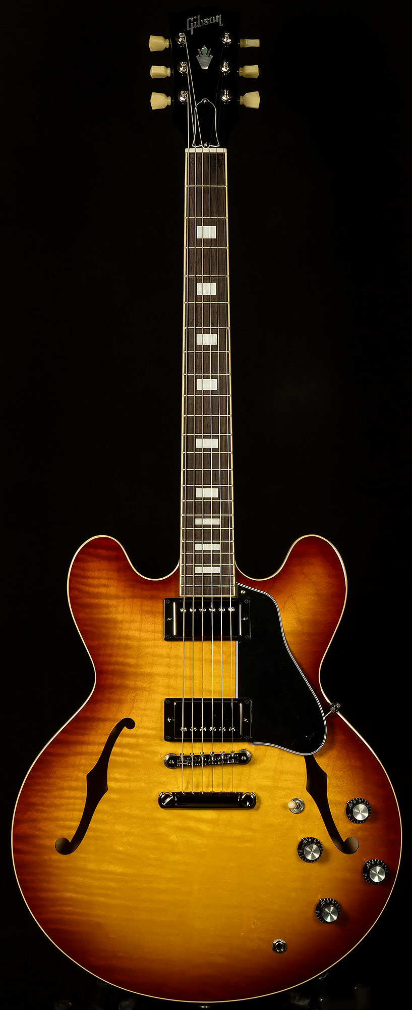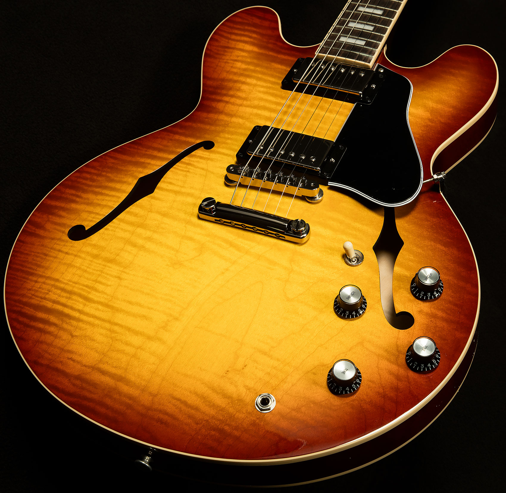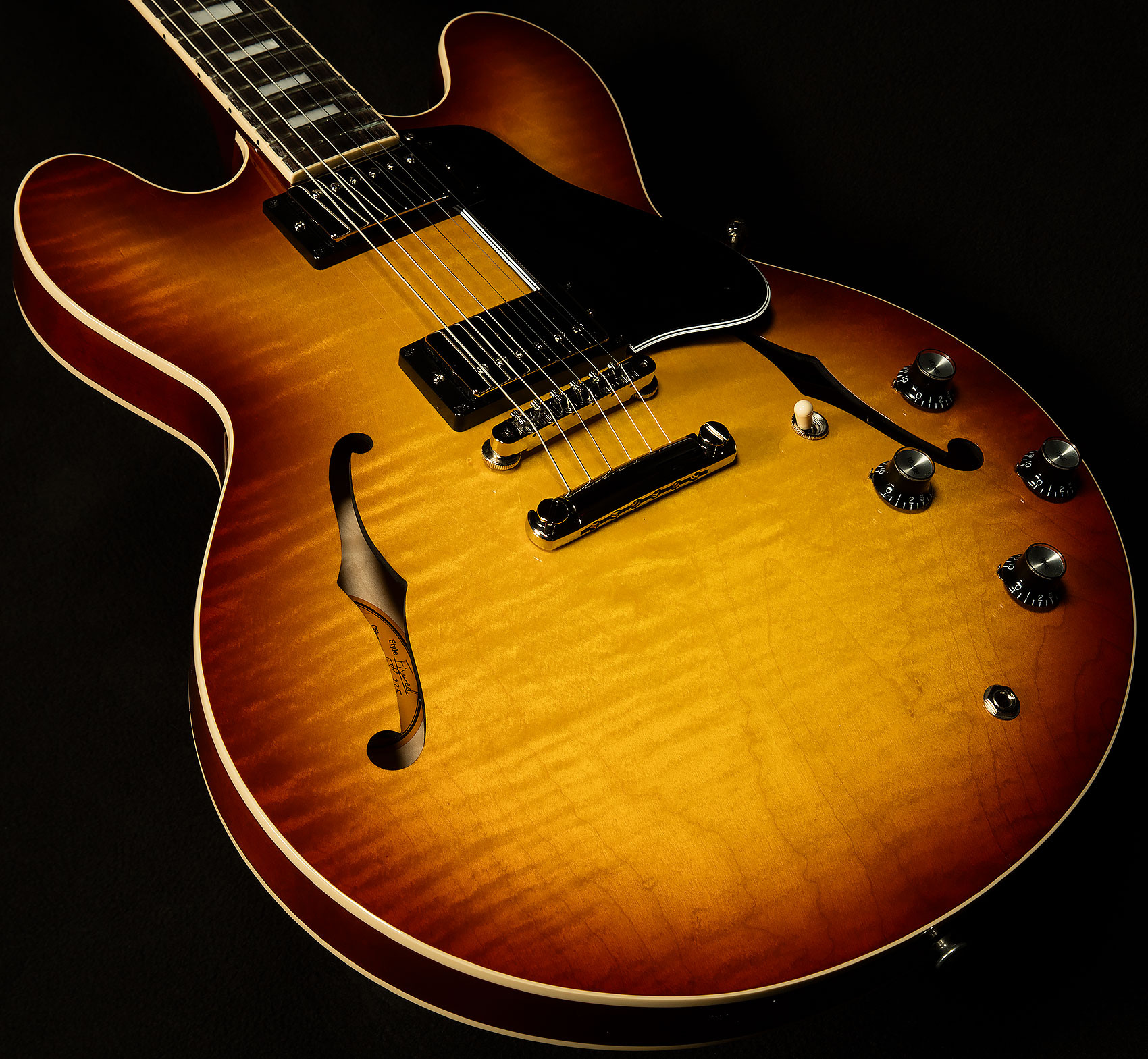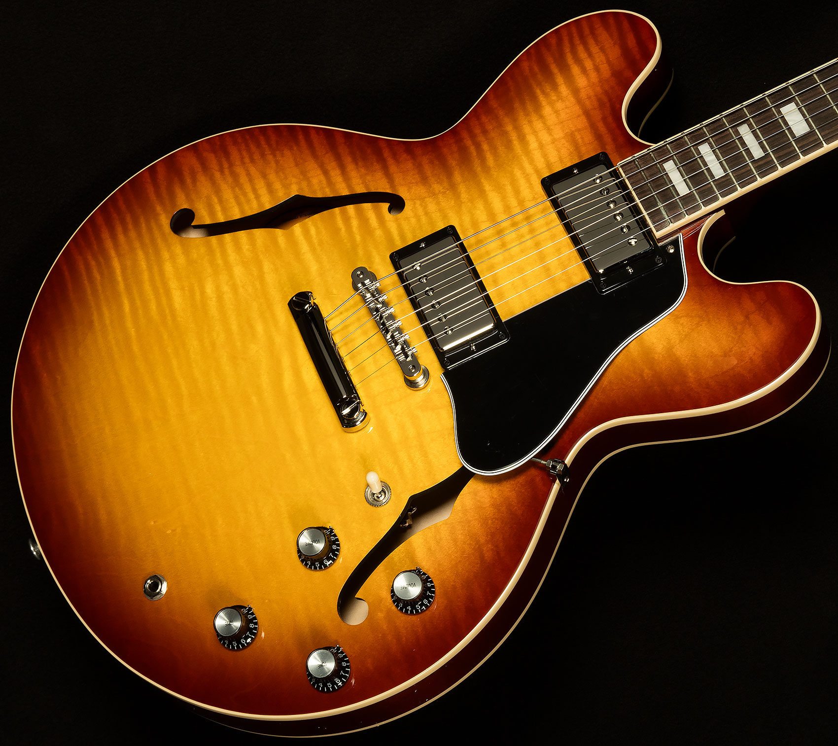 Gibson also outfitted these electrifying ES-335 with a variety of finishes that highlight the beauty of their figured maple tops. A few fine details like Grover keystone deluxe tuners, black top-hat knobs with silver reflectors and acrylic small block inlays complete the aesthetic. So, these ES-335s are as easy on the eyes as they are on the ears!