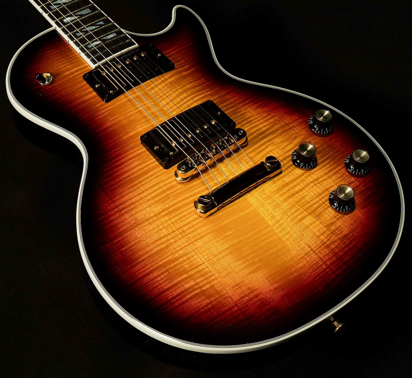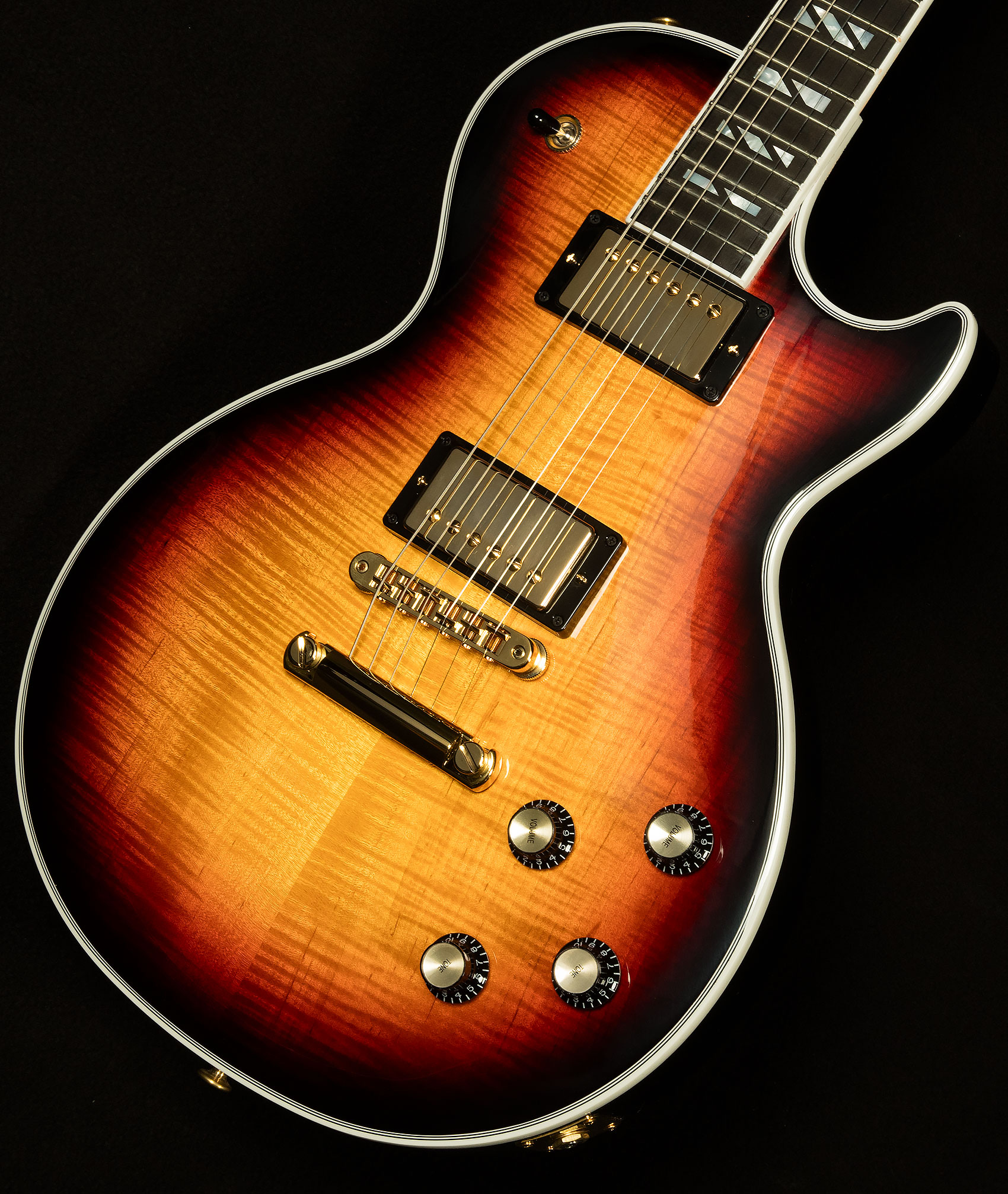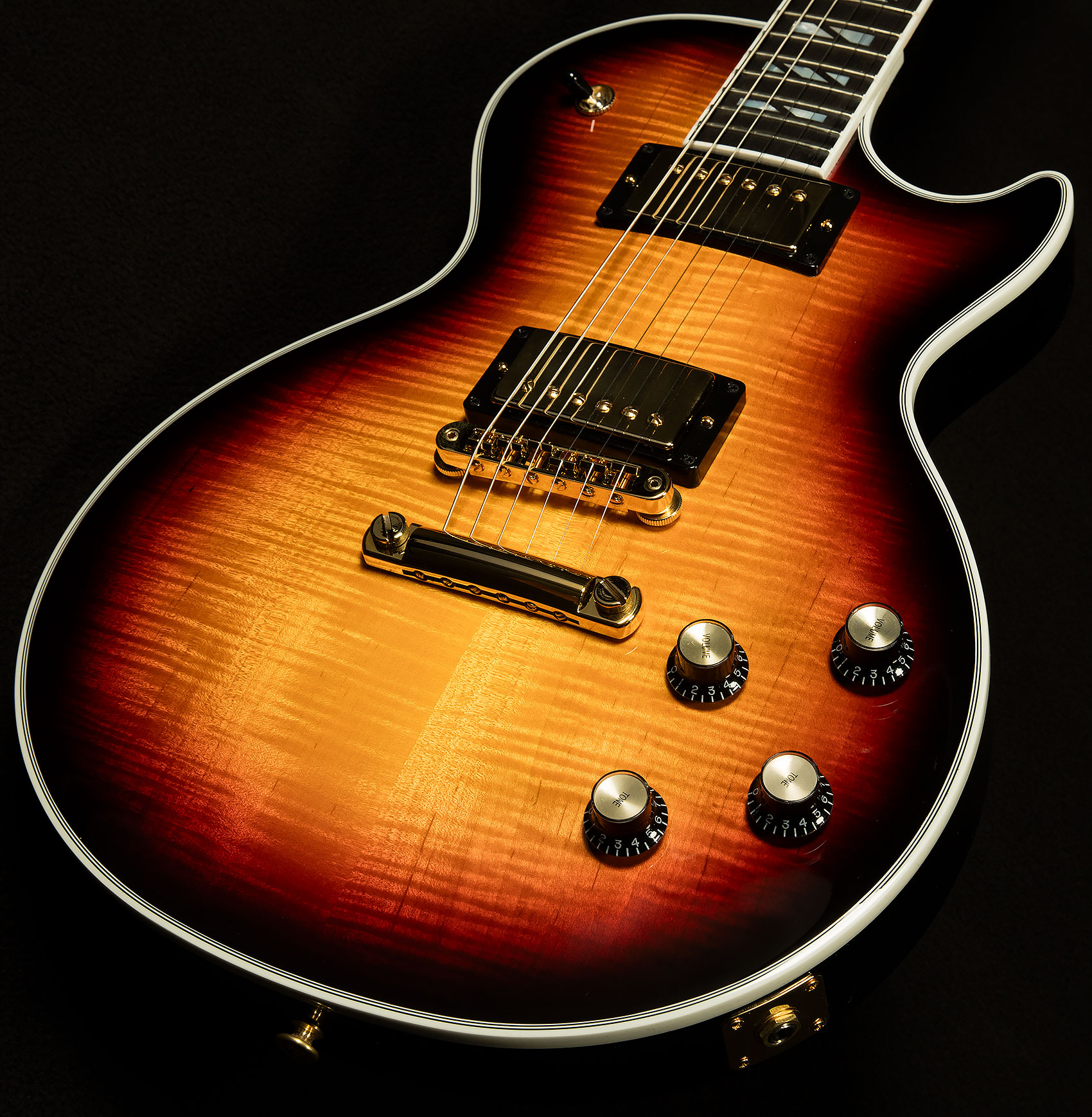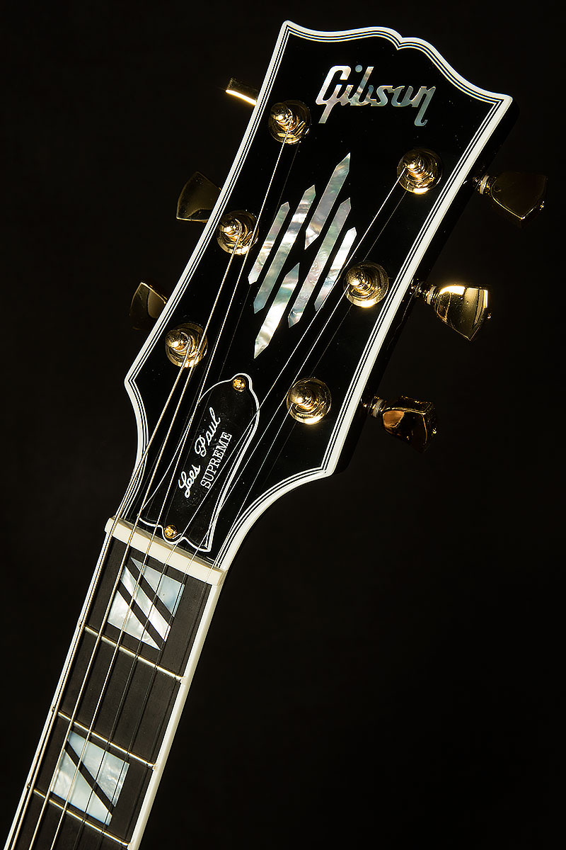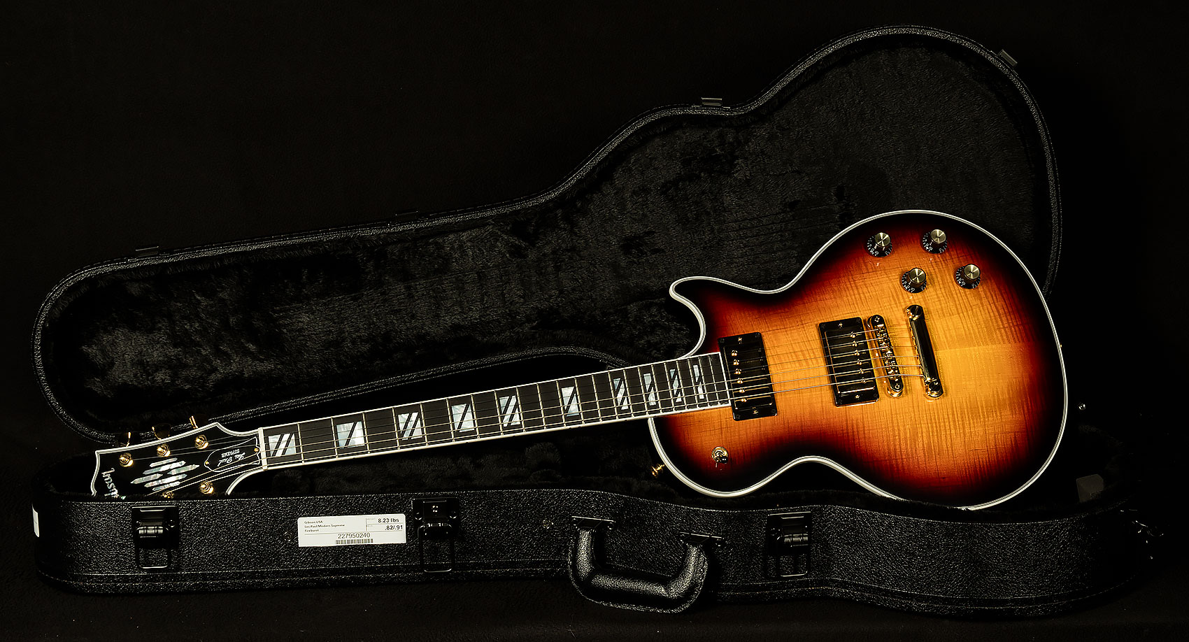 Gibson is excited to announce the return of the Les Paul Supreme. With a refreshed feature set, it is bound to overshadow everything else in sight and be one of the most exciting new releases of the year. It features a beautiful AAA-figured maple top on a mahogany body with Ultra-Modern Weight Relief. The mahogany neck has an ebony fretboard with a compound radius and Super Split Block mother-of-pearl inlays. The neck has a Modern Contoured Heel for exceptional upper fret access, and the headstock is adorned with a striking new mother-of-pearl inlay inspired by a design from the 1940s that was discovered in the Gibson archives. The Burstbucker Pro and Burstbucker Pro + pickups are paired with push/pull Volume and Tone potentiometers for flexible coil tap, phase, and Pure Bypass switching. The three gorgeous finishes are elegantly highlighted with gold hardware, making this not only a great-sounding and highly flexible instrument but also an exceptionally beautiful-looking modern rock machine. A hardshell case is also included.