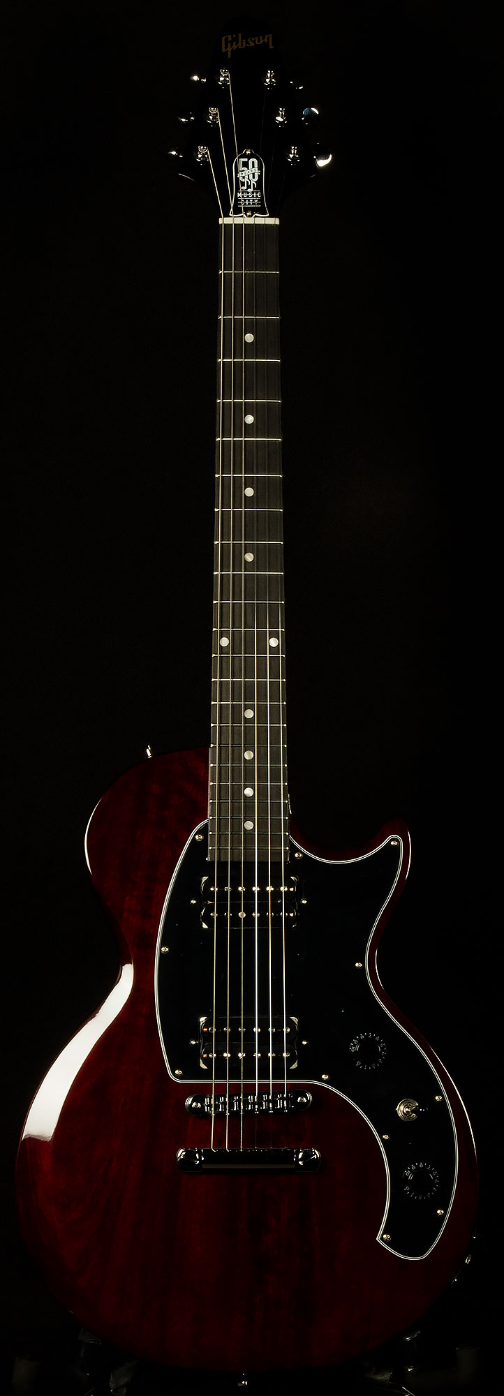 The lightweight, contoured body is solid poplar. The maple neck has a fast-playing and comfortable Slim Taper profile and is equipped with a striped ebony fretboard that is adorned with acrylic dot inlays and outfitted with 22 medium jumbo frets. The 12 fretboard radius makes first-position chords and string bends higher up the fretboard equally effortless. The hardware is chrome-plated, including the Nashville Tune-O-Matic bridge, aluminum Stop Bar tailpiece Grover Mini Rotomatic tuners, and output jack plate cover. A black 5-ply pickguard holds two Gibson 70s Tribute humbucker pickups, which are wired to an intuitive and comfortable control layout consisting of master volume and master tone controls with black Top Hat knobs and a three-way pickup selector toggle switch.