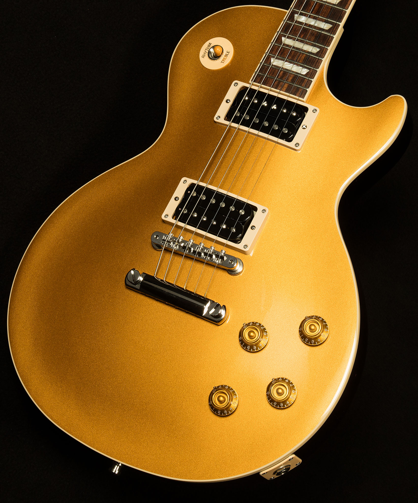 Since Slash is perhaps the greatest Les Paul-slinging icon of the modern era, Gibson really pulled out all the stops for the Slash Les Paul Standard. Each of these guitars sports a sweet finish Slash-approved finish over a gorgeous gold and an uber-comfy '50s Vintage neck profile. As a result, these guitars play beautifully, and they have jaw-dropping, drool-inducing looks.