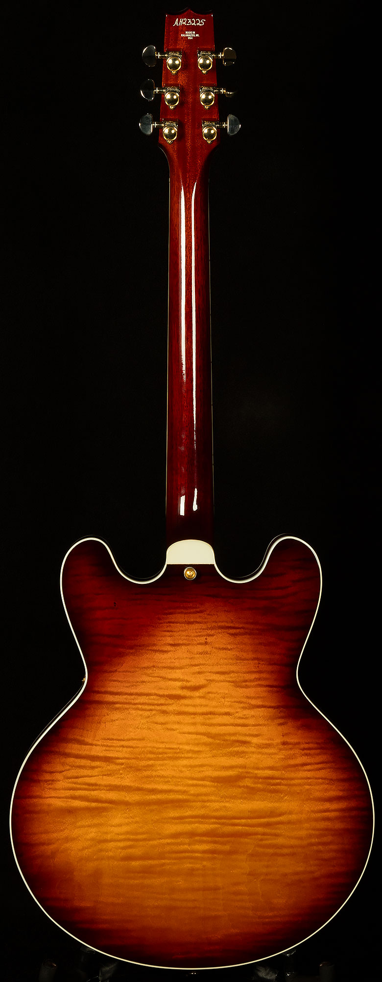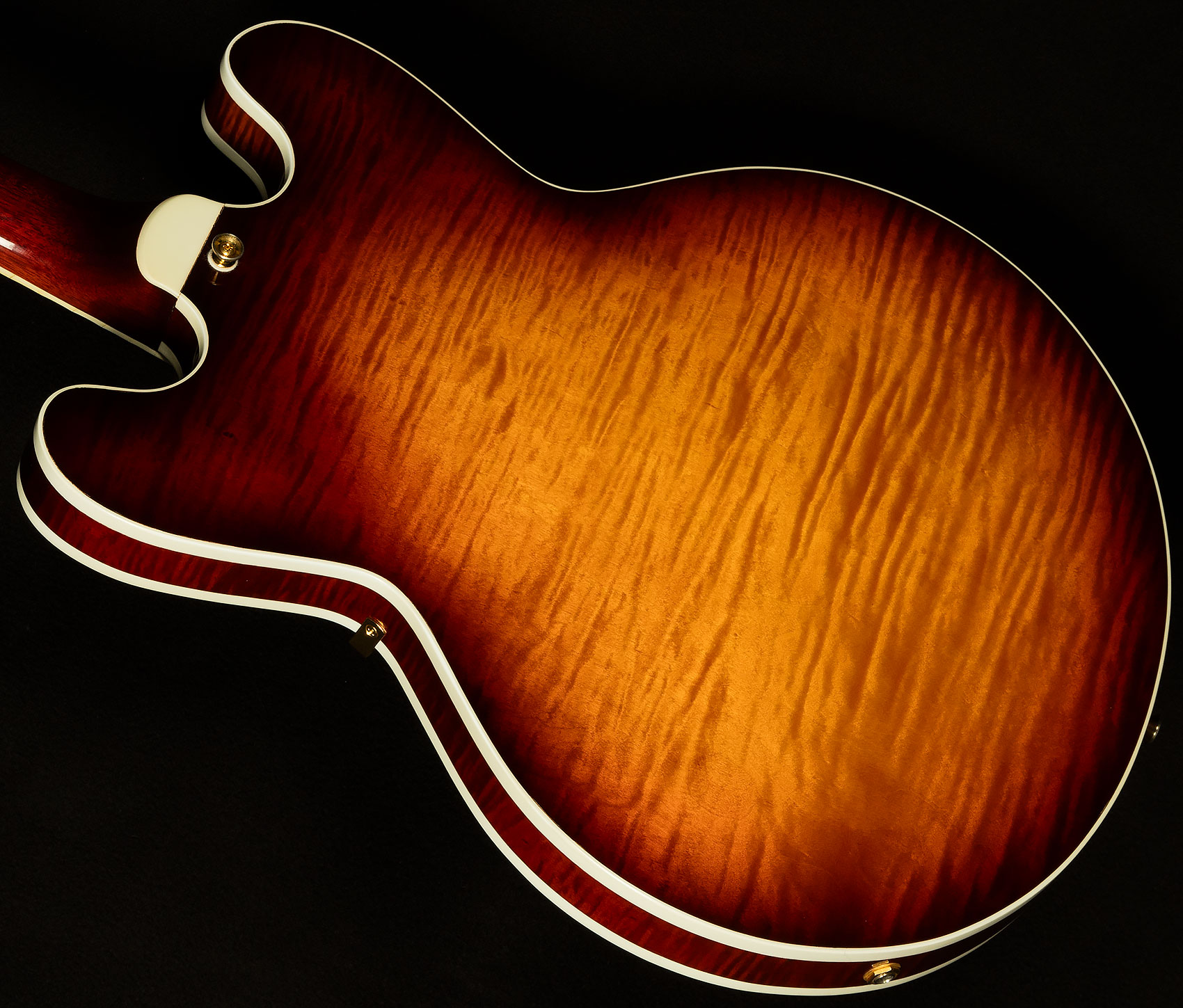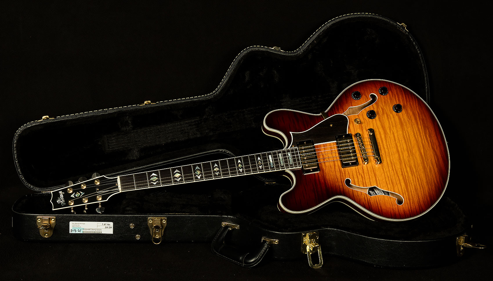 The attack is woody and percussive, and overall this serial has an acoustic-like touch-sensitivity. The neck pickup is sweet, warm, and creamy, with a complex midrange, deep lows and glassy highs. The bridge pickup snarls and crunches beautifully, with punchy midrange, tight lows and gorgeous open, sparkly highs.