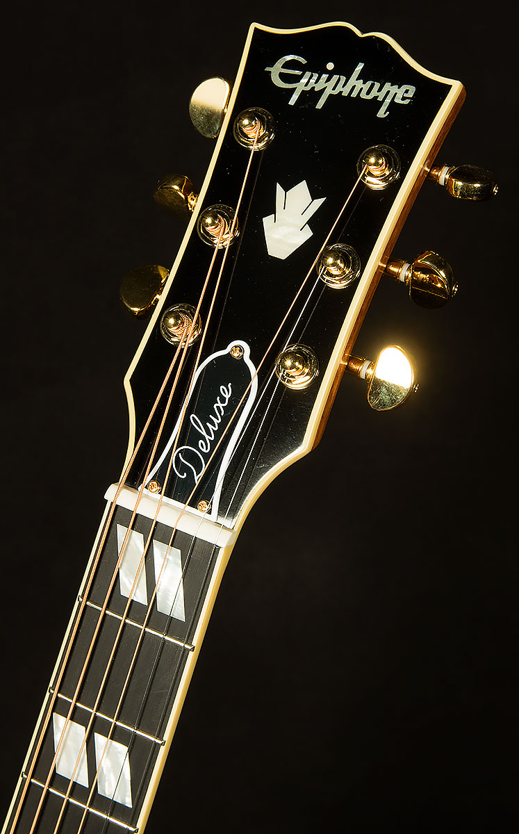 | Headstock | Gibson "Open Book"-style with Mother-of-Pearl Epiphone Logo and Gibson Crown |
