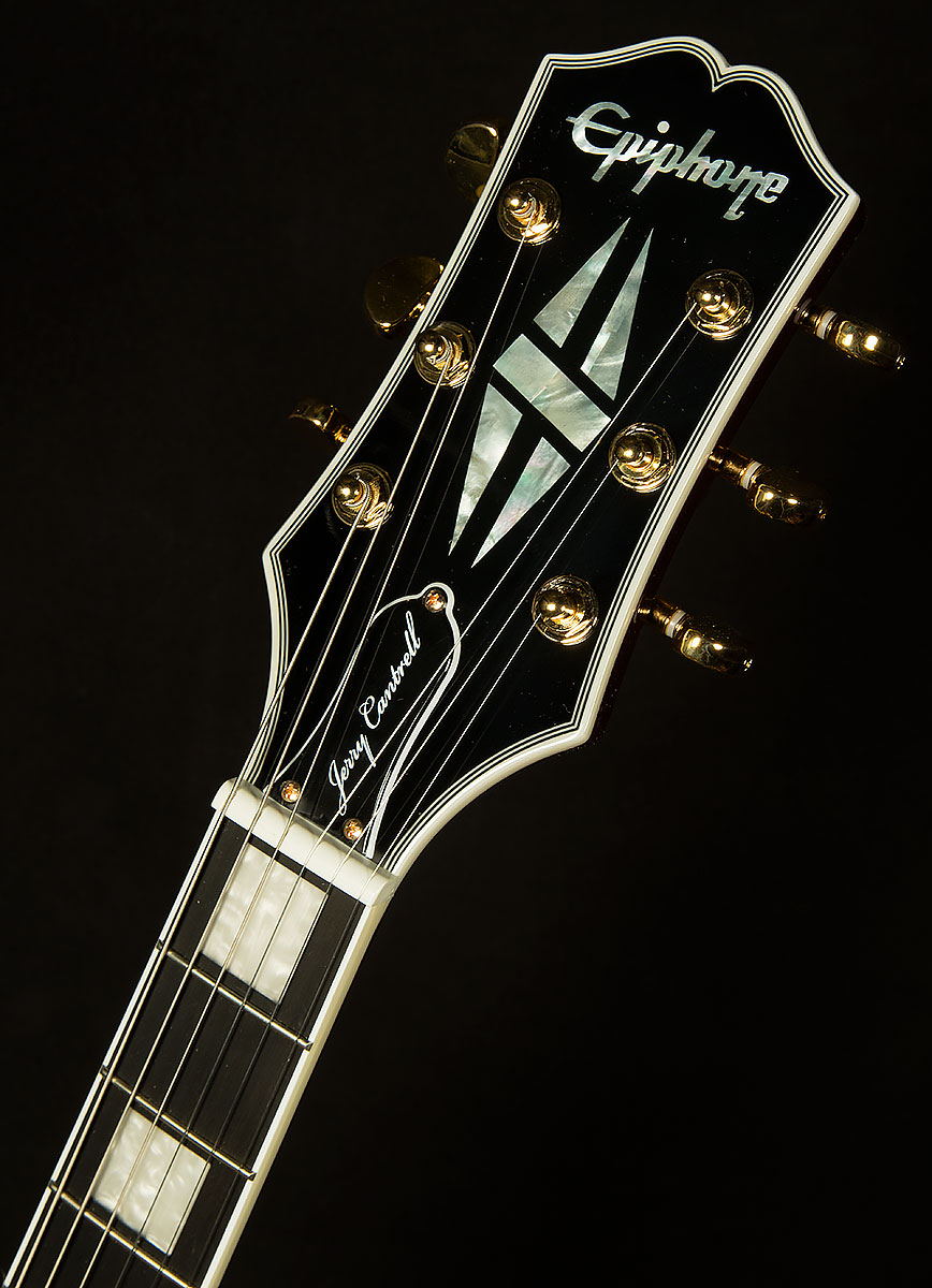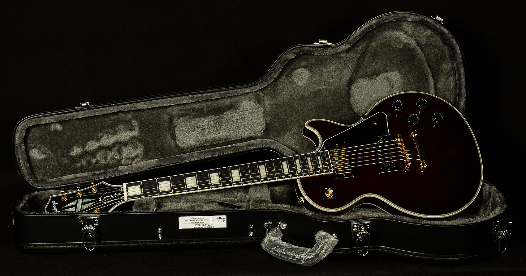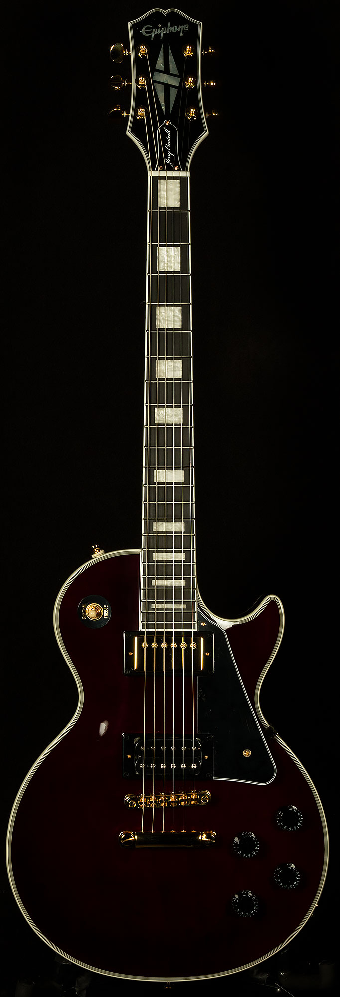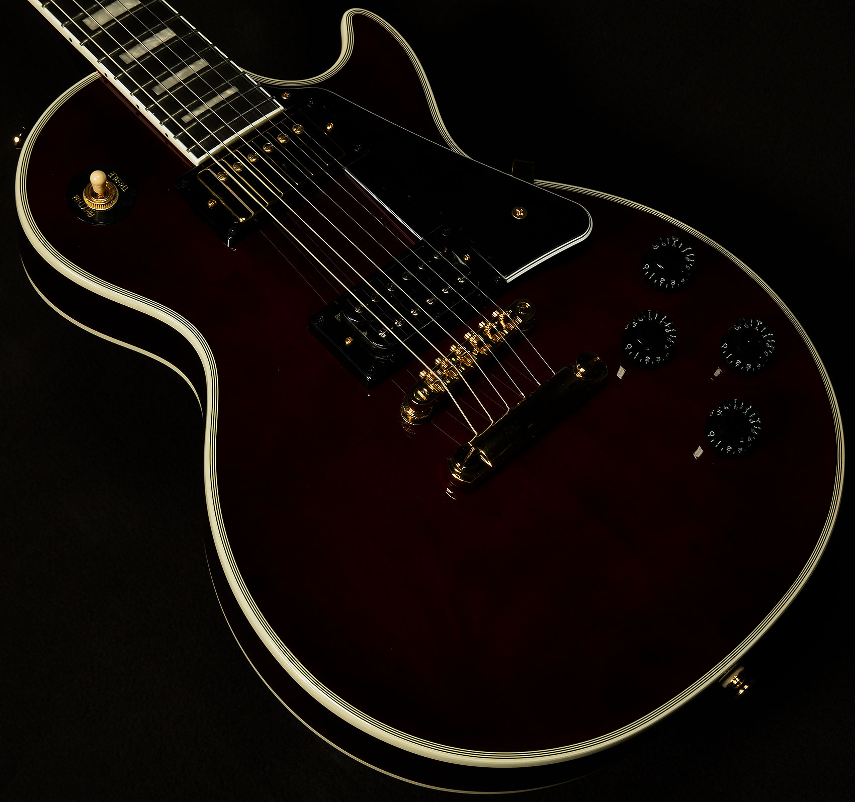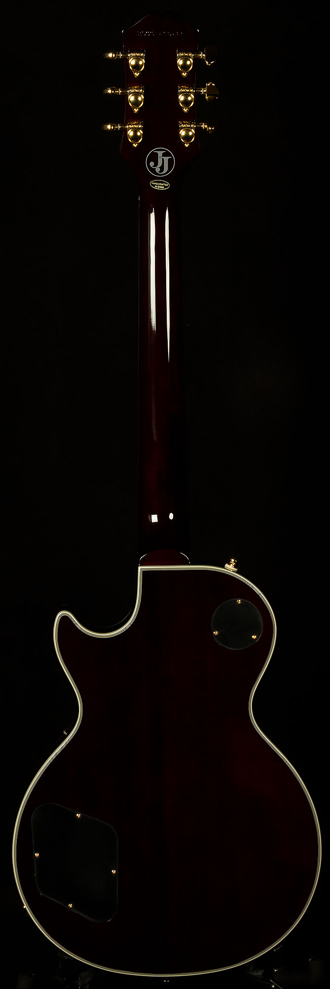Inspired by Jerry Cantrell’s iconic Les Paul Custom, this guitar has many personal touches, including a Dark Wine Red finish over a plain maple top and 9-hole weight-relieved mahogany body, gold hardware, Grover Rotomatic Kidney tuners, an Alnico Classic PRO humbucker with a gold cover in the neck position and an exposed coil 98T PRO humbucker in the bridge position. The mahogany neck has a Cantrell custom taper, and Jerry Cantrell’s name appears on the truss rod cover in white script, while a JJ logo appears on the back of the headstock. A custom hardshell case is included.