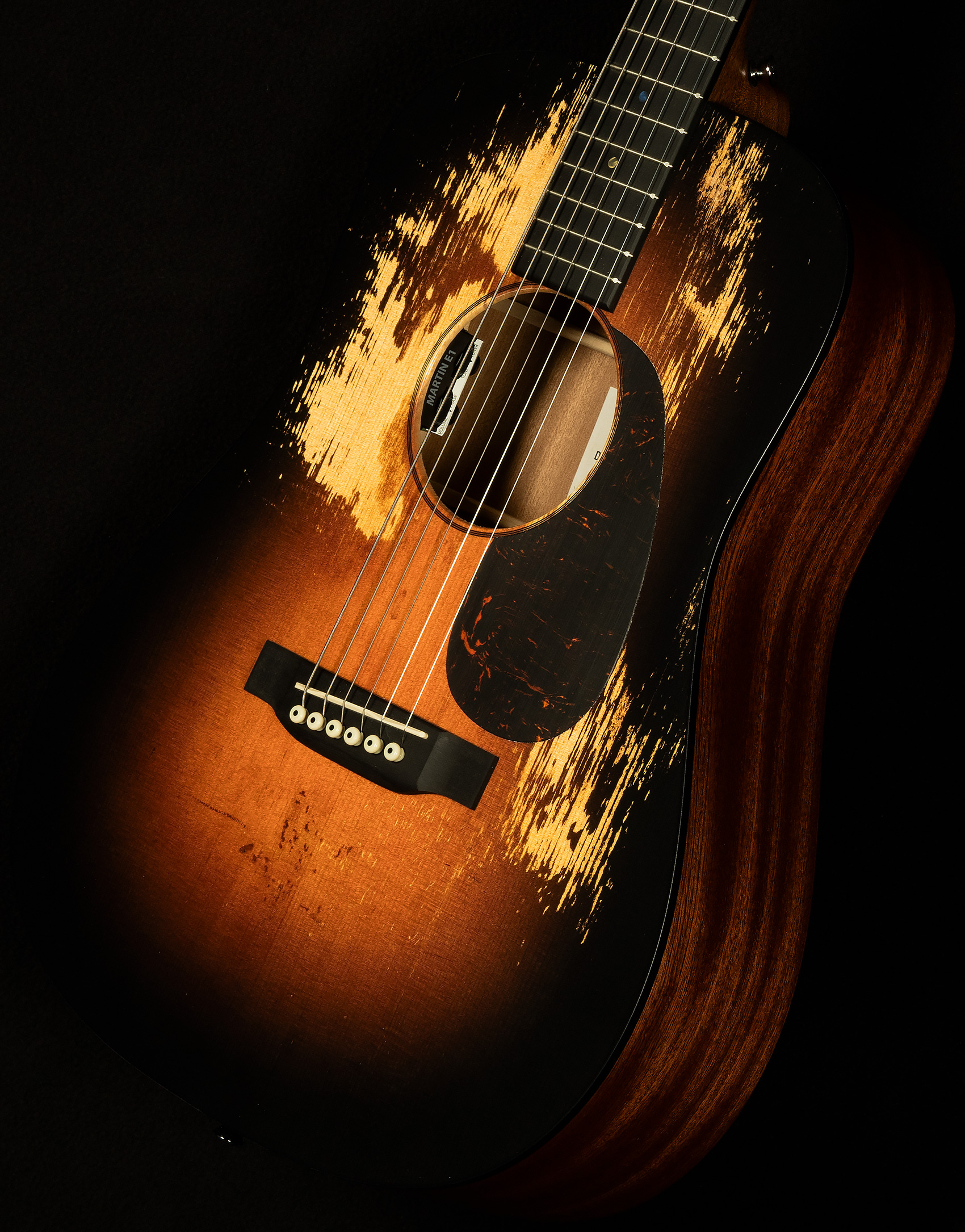 The D Junior E StreetLegend Burst is your full-scale musical companion, built to bring the soul of a vintage Martin to every adventure. This all-new Junior Series Dreadnought combines Martin’s legendary craftsmanship with a road-ready size, offering the bold tone and deep resonance you’d expect from a larger guitar in a compact, travel-friendly package. Its solid spruce top, featuring a sunburst finish with visual wear inspired by historic models in the Martin Museum, gives it a storied character that feels like an old friend from the first strum. Designed for wherever your music takes you, the D Junior E StreetLegend Burst delivers with its solid sapele back and sides, scalloped spruce X-bracing, and Performing Artist neck with a familiar 24.9" scale length for effortless playability. Whether you’re strumming on the couch, hitting the studio, or plugging in for a live set, Martin E1 electronics with a built-in tuner and volume, tone, and phase controls ensure your sound stays clear and true. Ergonomic refinements like a gently beveled fingerboard edge and optimized string spacing make this guitar even harder to put down. Packaged with a durable softshell case, the D Junior E StreetLegend Burst is your full-scale ticket to uncompromising sound and style—wherever inspiration strikes.
