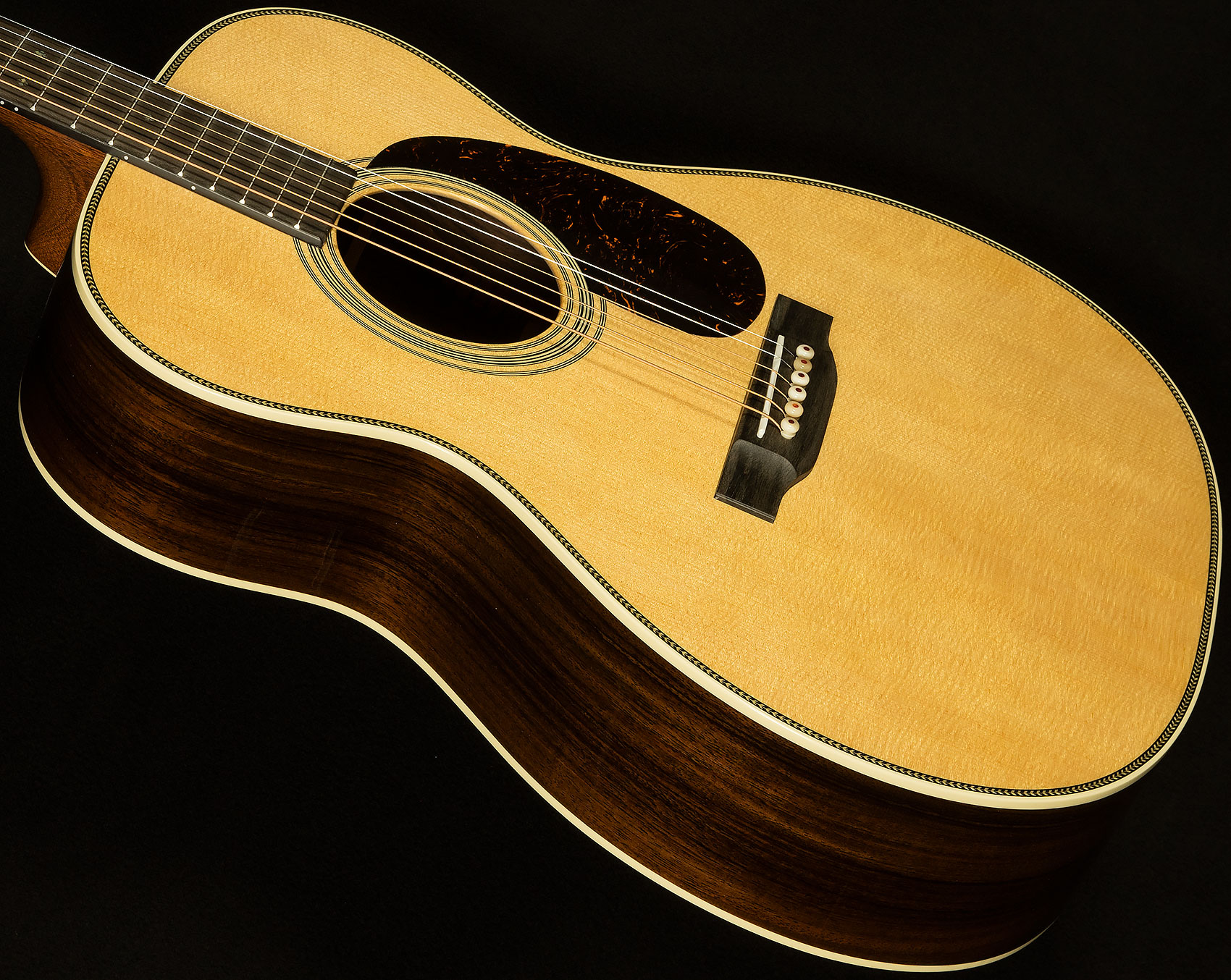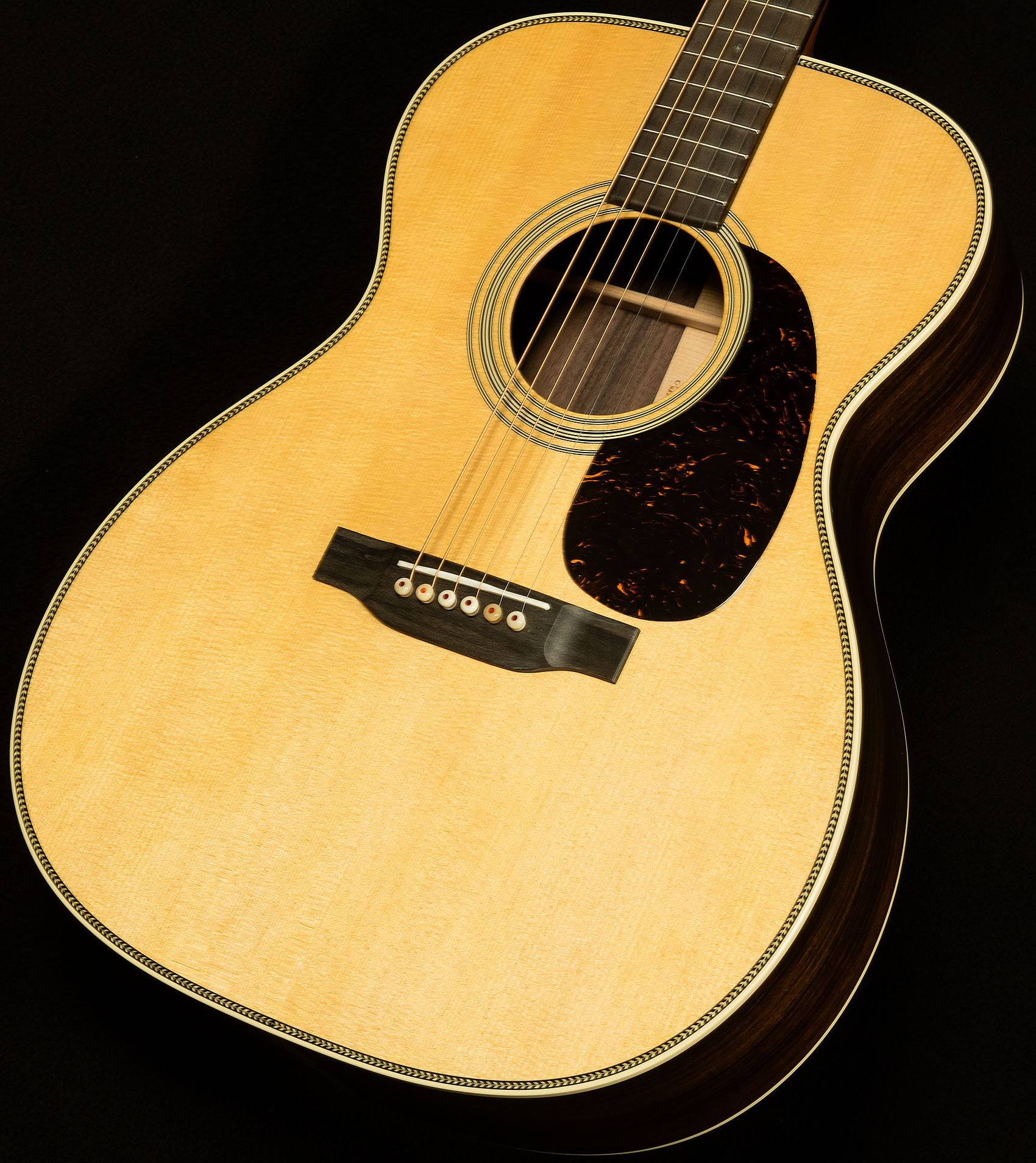 The Martin 000-28 is one of the most iconic models in Martin’s lineup, trusted by generations of players for its versatility, tone, and timeless craftsmanship. Its Auditorium body size delivers a beautifully balanced voice across all six strings, making it equally suited for fingerstyle finesse or bold strumming. Handcrafted with a solid spruce top and solid East Indian rosewood back and sides, the 000-28 offers deep bass, rich overtones, and exceptional resonance, perfectly balanced for any playing style. The satin neck with a Golden Era (GE) Modified Low Oval profile, high-performance taper, and 24.9" scale length ensures unmatched comfort and effortless playability. Elegant details, like bold herringbone top inlay, antique white binding, an ebony bridge with bone pins, and an ebony fingerboard adorned with abalone diamond and square inlays, enhance its timeless design. Available in a variety of stunning gloss options, the 000-28 is a guitar you can trust to unleash the artist within.