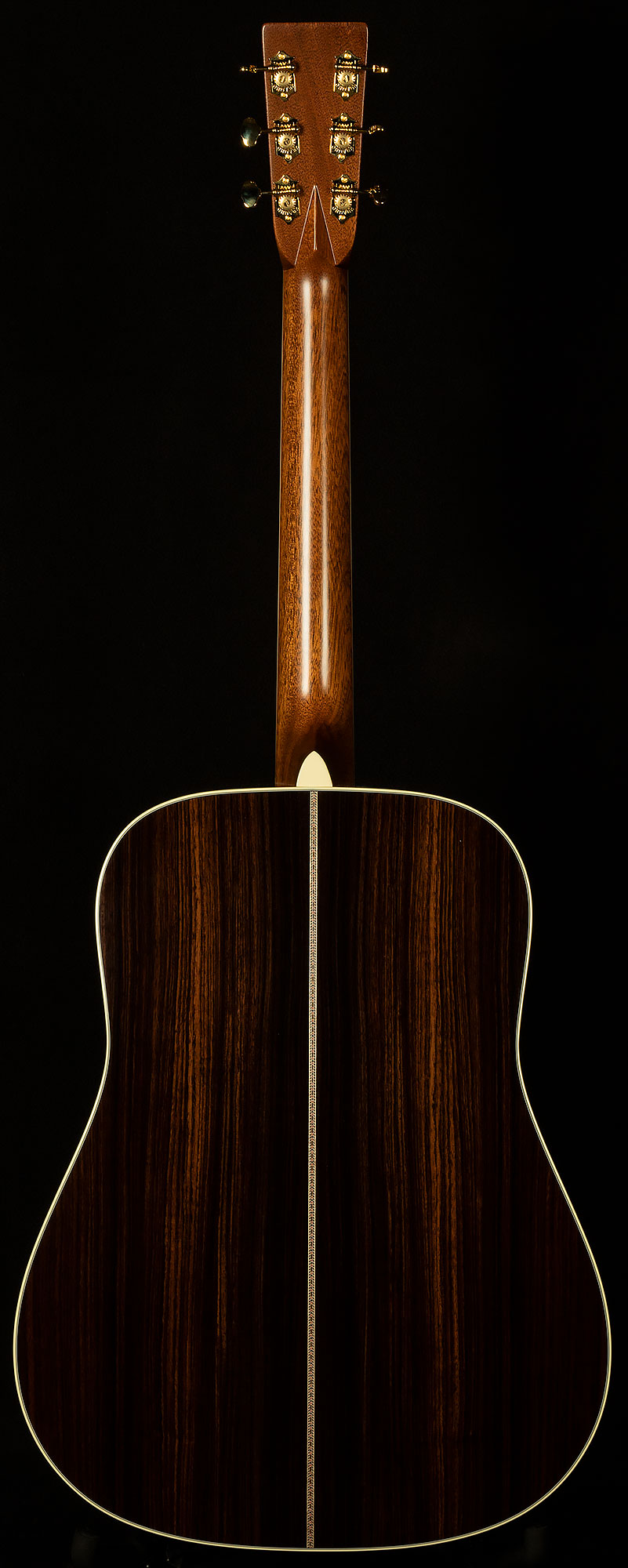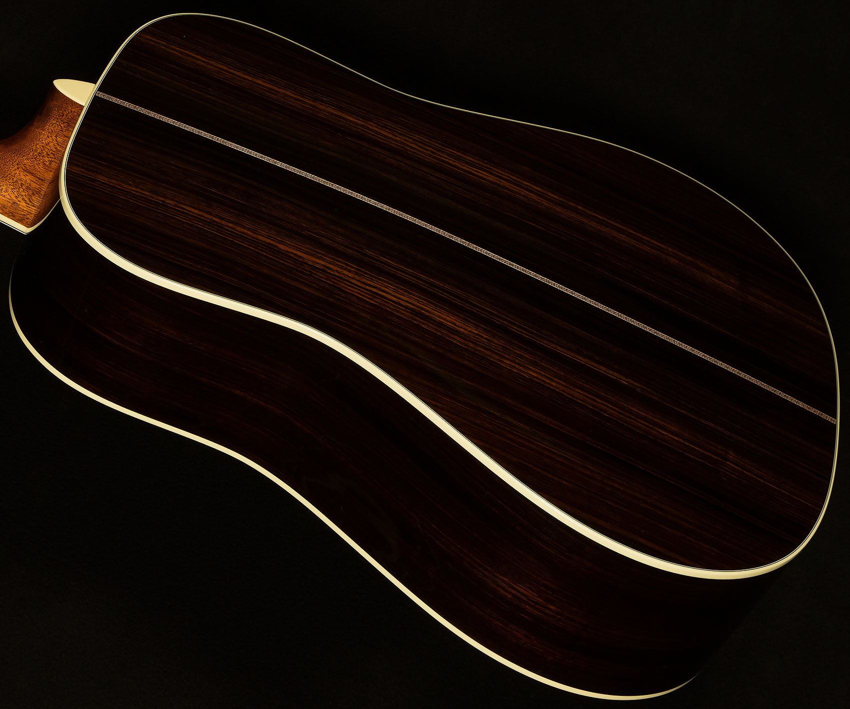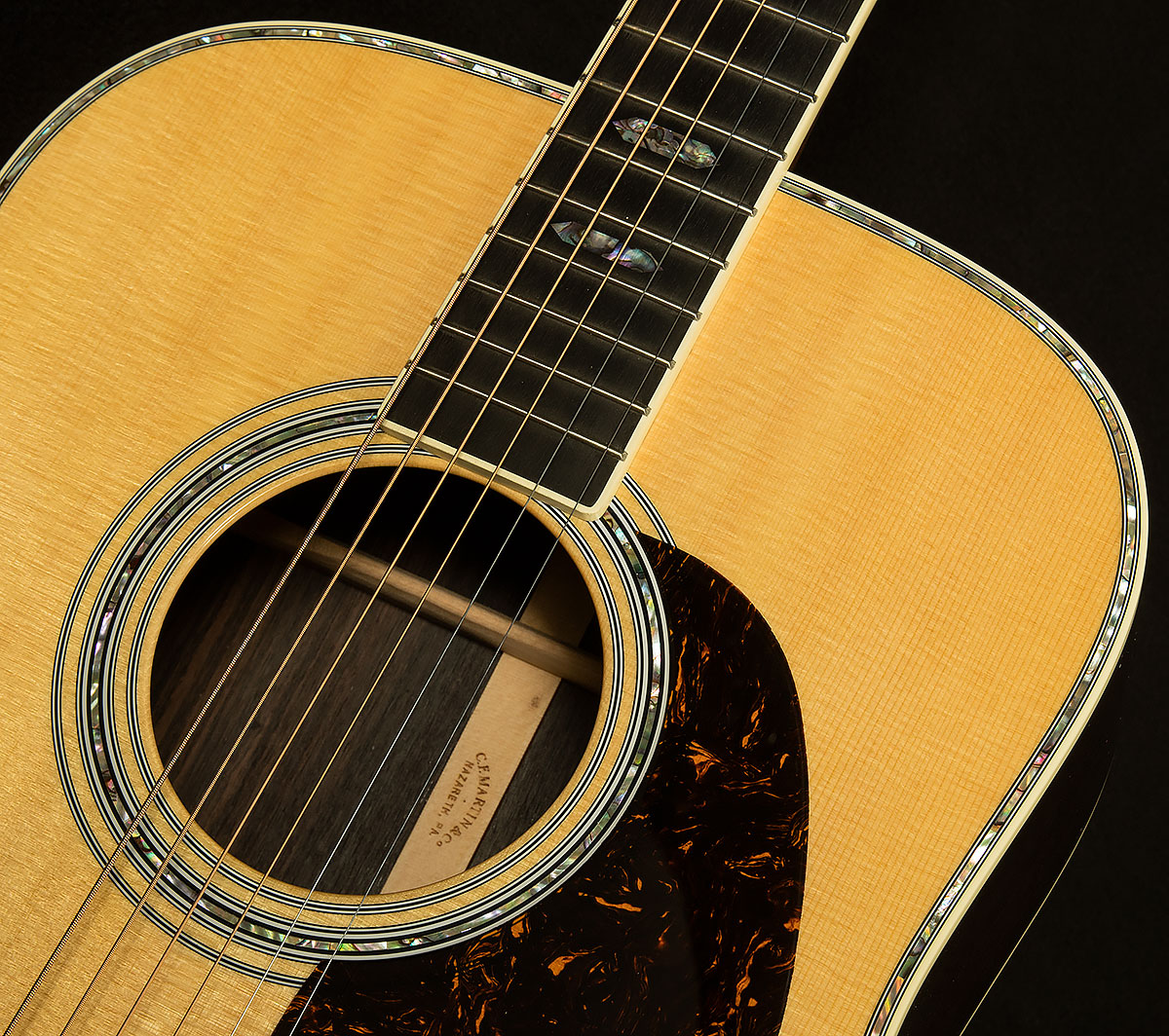 The Martin D-41 is a trusted icon in Martin’s acoustic lineup, blending powerful tone with refined elegance. Its Dreadnought body size delivers a bold, projective sound with strong bass, clear trebles, and rich overtones, making it ideal for players who want their music to fill the room. Handcrafted with a solid spruce top and solid East Indian rosewood back and sides, the D-41 offers a resonant voice that’s balanced across all playing styles. The satin genuine mahogany neck, featuring a Golden Era (GE) Modified Low Oval profile, high-performance taper, and 25.4" scale length, ensures smooth playability. Luxurious abalone details, including the rosette, top-edge trim, and hexagon inlays, elevate its timeless design. Complete with antique white binding, a bound ebony fingerboard, an ebony bridge with bone pins, gold open gear tuners, and a variety of striking gloss options, the D-41 is a guitar you can trust to unleash the artist within.