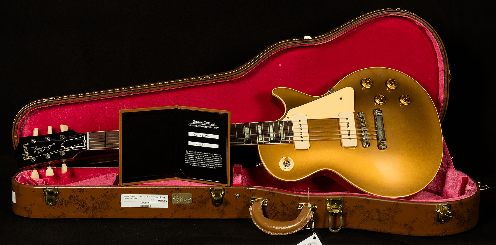 1956 was the only full year in which the Les Paul model featured the powerful P-90 pickups and the adjustable ABR-1 bridge setup, a combination that allowed the Les Paul model to intonate, sustain, and thrill like never before. This Gibson Custom Shop '56 Reissue captures the look, feel and searing sound of an original 1956 Les Paul Goldtop in exhaustive detail, featuring all solid woods, custom paint, authentic replica parts, Historic narrow/tall frets, and hot hide glue construction.