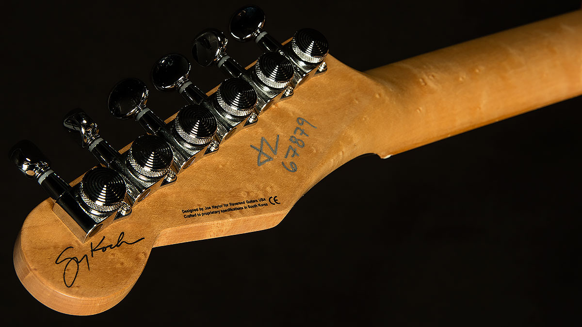 Next, the Gristlemaster's incredible build quality will jump out at you. When you sit down with The Gristlemaster, Reverend's impeccable craftsmanship and attention to detail are immediately apparent. A guitarist like Greg Koch needs a guitar with righteous build quality to withstand the onslaught of fretboard savagery that spills forth from his mighty hands, and the Gristlemaster is up to the task. Reverend's classic medium oval neck profile is as comfortable as your favorite pair of old sweatpants, and the fretboard has a Compound 10"-14" radius to allow for low setups and easy bending. And, with its pin-lock tuners and Boneite nut, changing strings on the Gristlemaster is a breeze, and its tuning stability is top-notch.