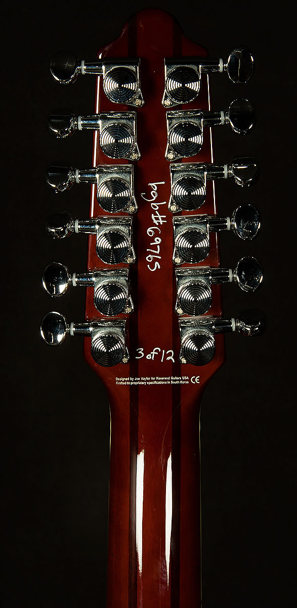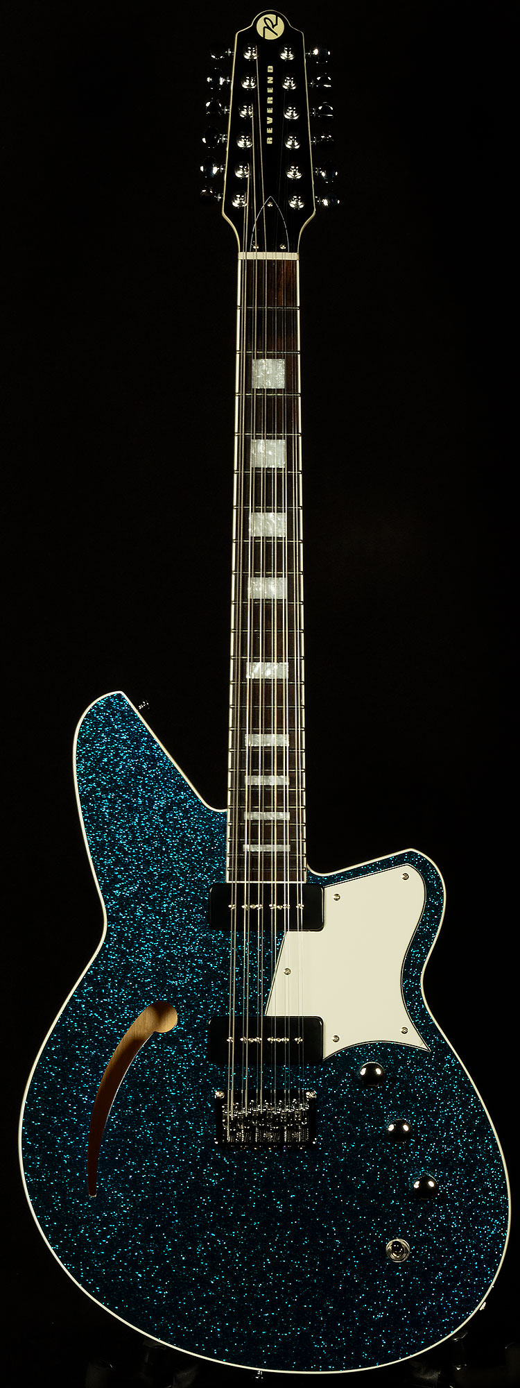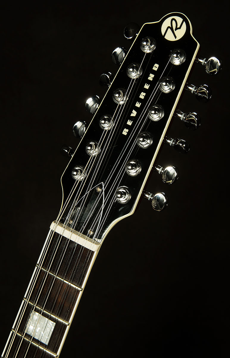 The most important of these appointments is the twelve-saddle bridge. Having the ability to tweak each string allows for precise intonation, which means that each every chord you play will be more in tune. That level of accuracy ensures that this twelve-string will always chime like a clocktower bell! Speaking of tuning, the Boneite nut and Reverend’s pin-lock tuners give this guitar fantastic tuning stability, so you won’t have to spend forever tuning in between songs.