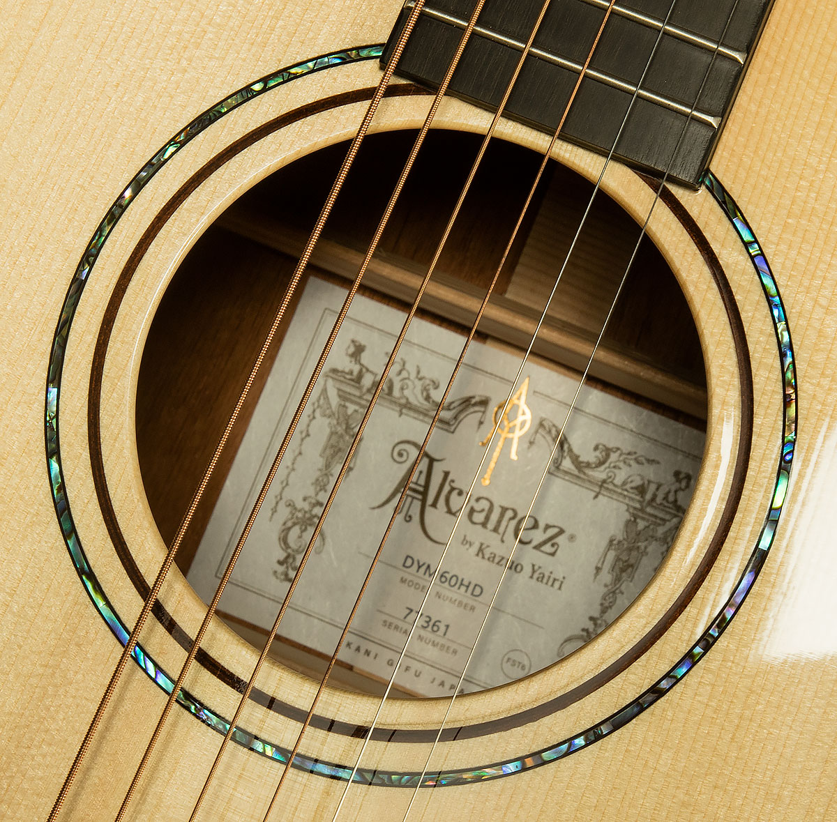 This DYM60HD is a part of the Alvarez Masterworks series, a line of guitars built from woods from Kazuo Yairi's personal stash. After Mr. Yairi passed, his coworkers and friends made the sojourn to a small cabin in the woods near the Yairi shop were he kept his private reserve of wood. When they entered, they found stacks of wood so dirty that they couldn't tell what it was. When they dusted it off, they were shocked and delighted to find that it was vintage Honduran mahogany, a tonewood prized worldwide for its beauty and warm, woody tone. As a tribute to Mr. Yairi, his coworkers--many of whom he had worked with for fifty-plus years--decided to build guitars with it to honor their friend. Thus, the Masterworks series was born. As someone who owns a guitar made of the stuff, let me tell you: it's some of the most incredible-sounding wood I've ever encountered!
