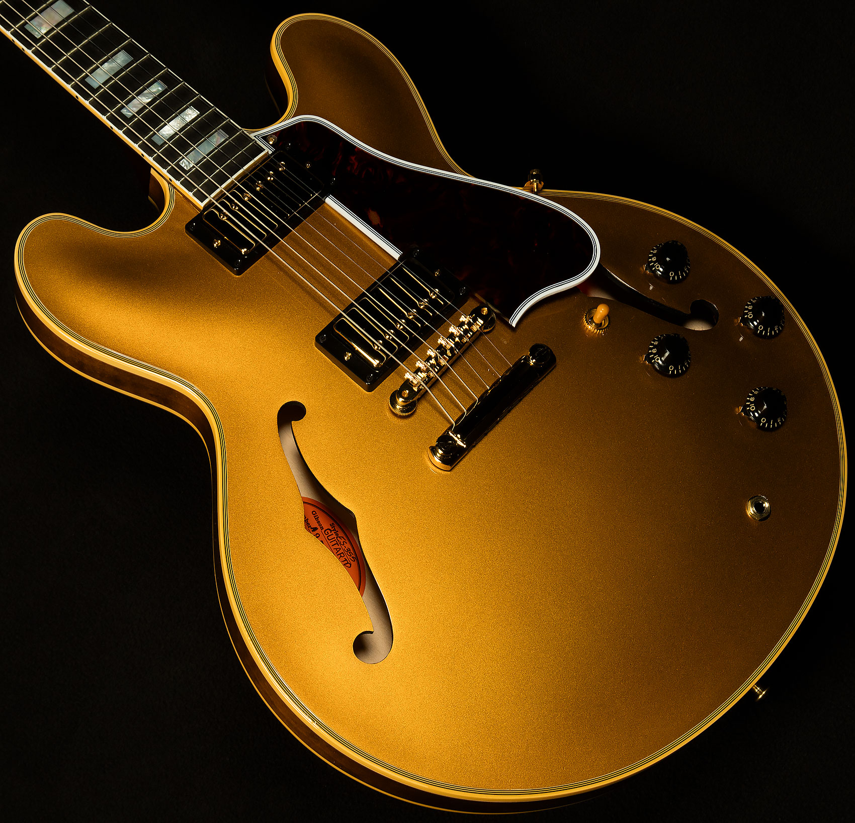 Wildwoodians, this regal Wildwood Spec Custom Shop creation is a reissue of a 1959 ES-355. Although similar to the ES-355 in construction, the ES-355 sports a host of upgraded appointments that truly give it the air of semi-hollow royalty. We're talking an ebony fretboard, gold Grover tuners, block inlays, split diamond headstock inlay, and a bound celluloid pickguard! Of course, it's a sonic titan, too, thanks to its solid maple centerblock and glorious vintage-style Wildwood Spec Custombuckers, which deliver classic PAF vibes in spades. And, the neck profile is a player's delight--not too thin, not too thick. We have no doubt that this kingly semi-hollow will bring you all kinds of musical joy and inspiration!