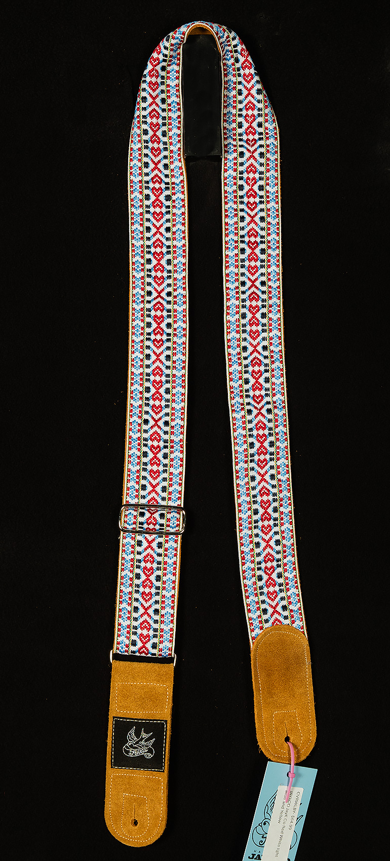 Paul Westerberg of The Replacements once said that “playing guitar is mainly about what kind of shirt and shoes you’re wearing,” and while the Wildwood team thinks there might be a little more to the equation than that, he does have a valid point: when you play guitar, it’s fun to look cool. That’s why we’re so delighted to be a dealer for Jaykco Straps! Jaykco makes guitar straps with vibrant personalities that stand in stark contrast with the forgettable, interchangeable mass-produced straps flooding the market. They handcraft each strap from real vintage fabric, and they pride themselves on giving each and every strap its own unique character.