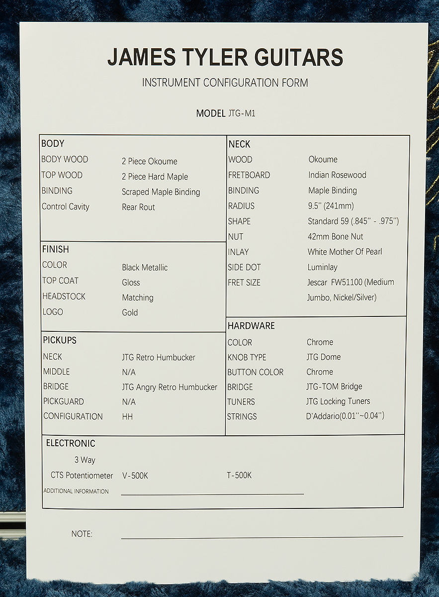 | Headstock | Black Metallic with JTG Gold Logo |