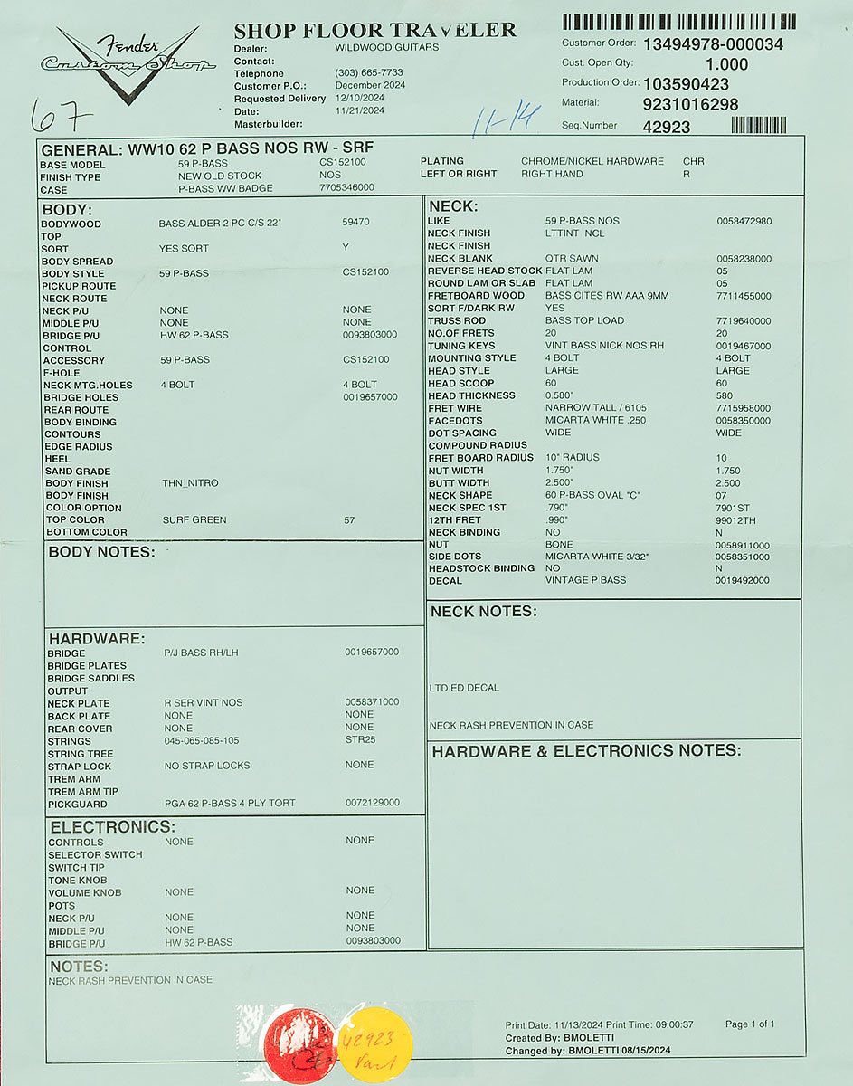Years ago, we approached our friends at the Fender Custom Shop with a proposal: would they build us basses that combined the mojo of a true-to-vintage reissue with modern handfeel and comfy modern ergonomics? They were enthused about the idea, and the Wildwood 10 was born. Thanks to the Custom Shop’s incredible craftsmanship and artistry, these guitars look gorgeous, sound killer, and play like butter.