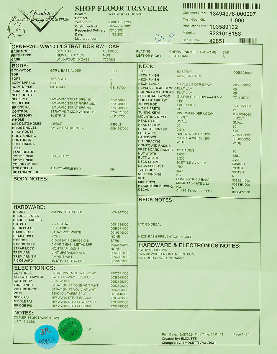 Fender Custom Shop Wildwood 10 1961 Stratocaster – NOS