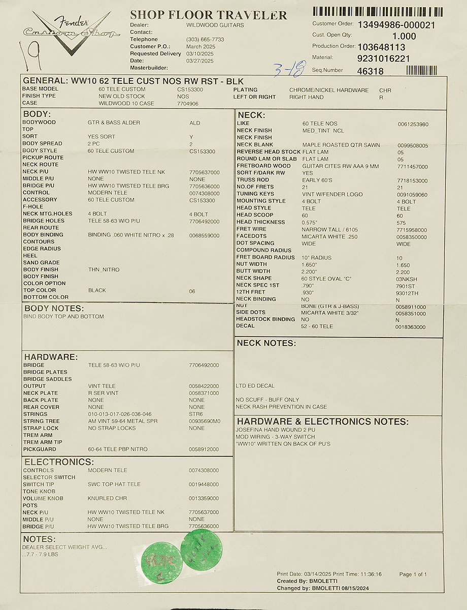 Model2025 Fender Custom Wildwood 10 '62 Tele Custom
