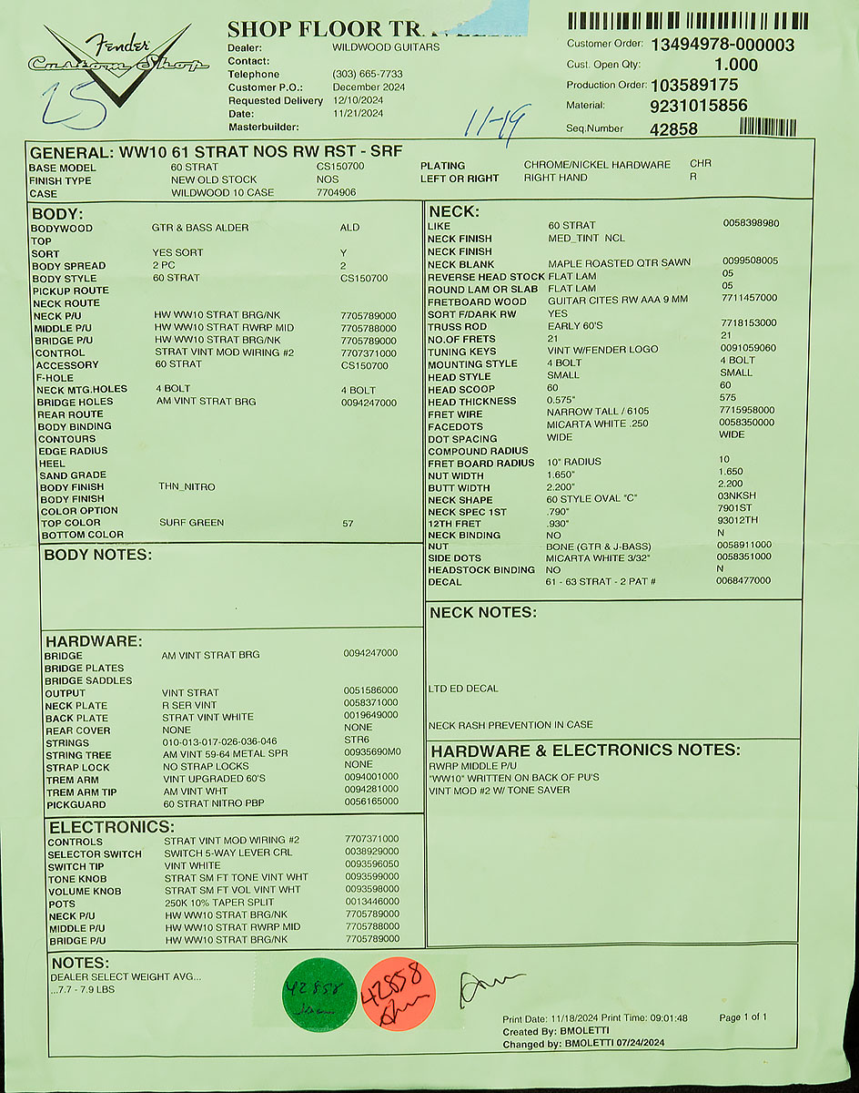 Fender Custom Shop Wildwood 10 1961 Stratocaster – NOS
