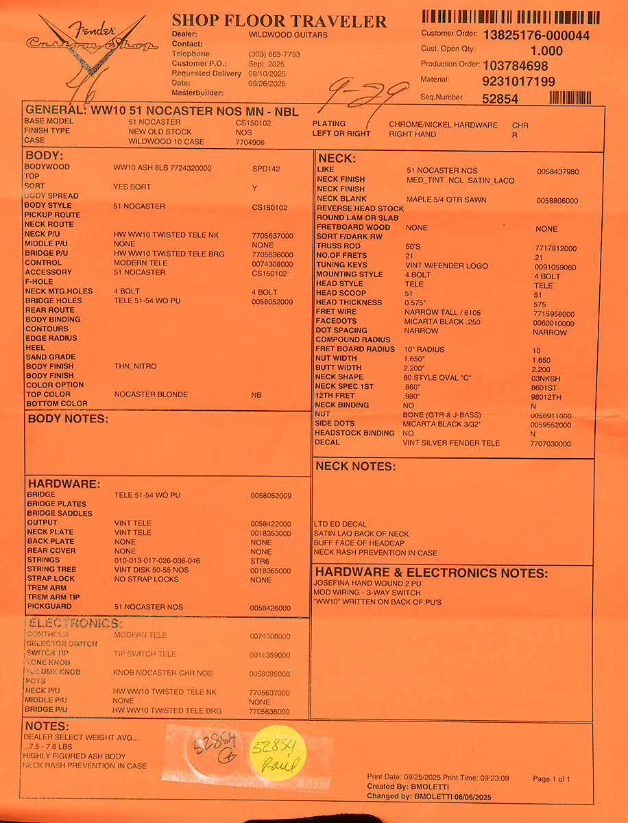 Because of their incredible rarity, original Nocasters have become some of the most desirable vintage pieces out there. So, we decided to team up with our friends at the Fender Custom Shop and issue a Wildwood 10 version that marries the vibe of the originals with modern ergonomics. The Wildwood-exclusive 10″ radius and 6105 frets are a perfect pairing with the '60 Oval C profile, and the Custom Shop hand-wound Twisted Tele pickups deliver spectacular sounds. We’re sure you’ll find a Nocaster here that will grab you by your heartstrings, so we invite you to browse away–just make sure your keyboard drool shield is in place!