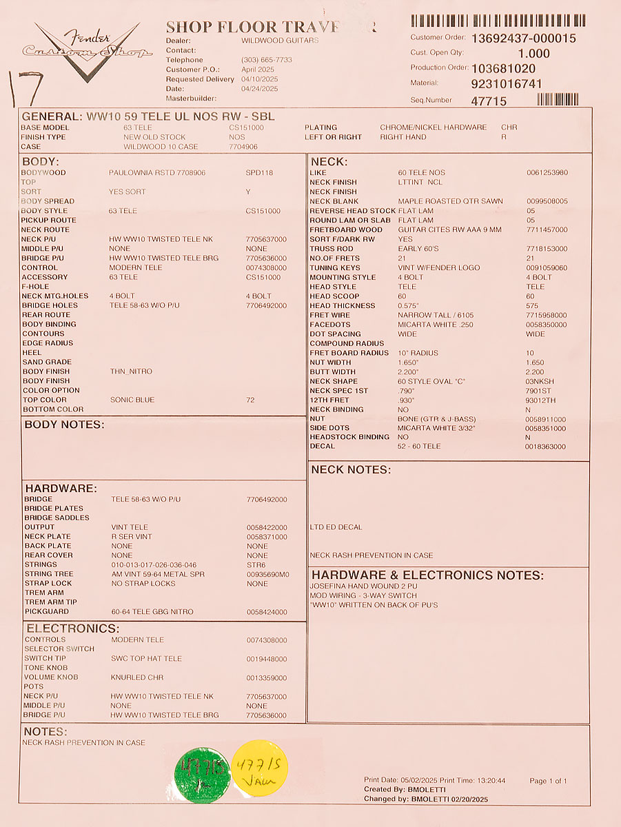 | Model | Dealer Select Wildwood 10 Ultra-Light '59 Telecaster |