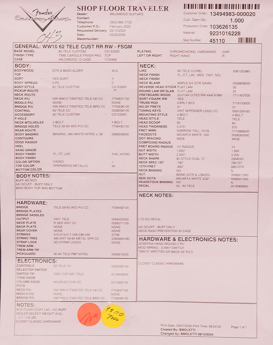 | Model | Dealer Select Wildwood 10 1962 Custom Telecaster |