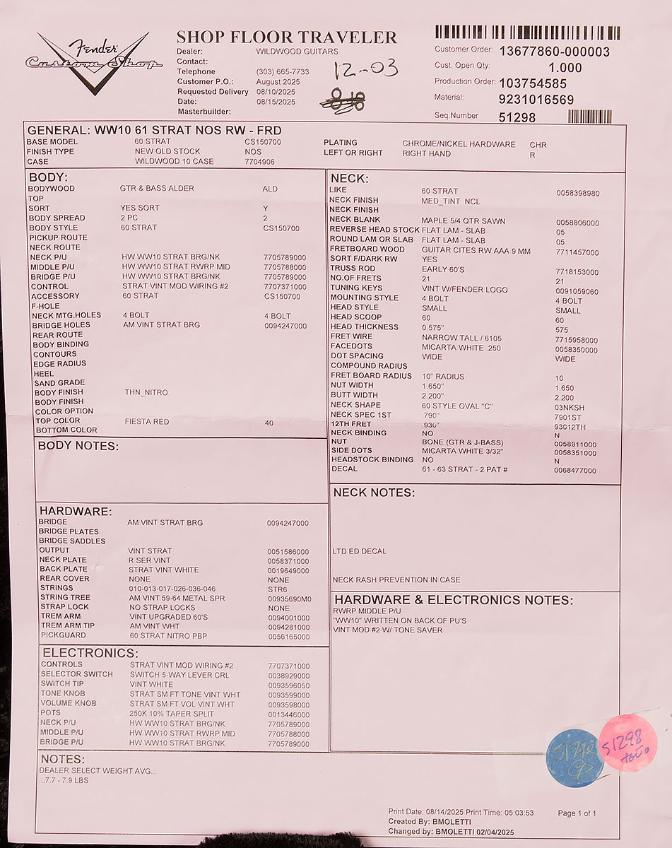 Fender Custom Shop Wildwood 10 1961 Stratocaster – NOS