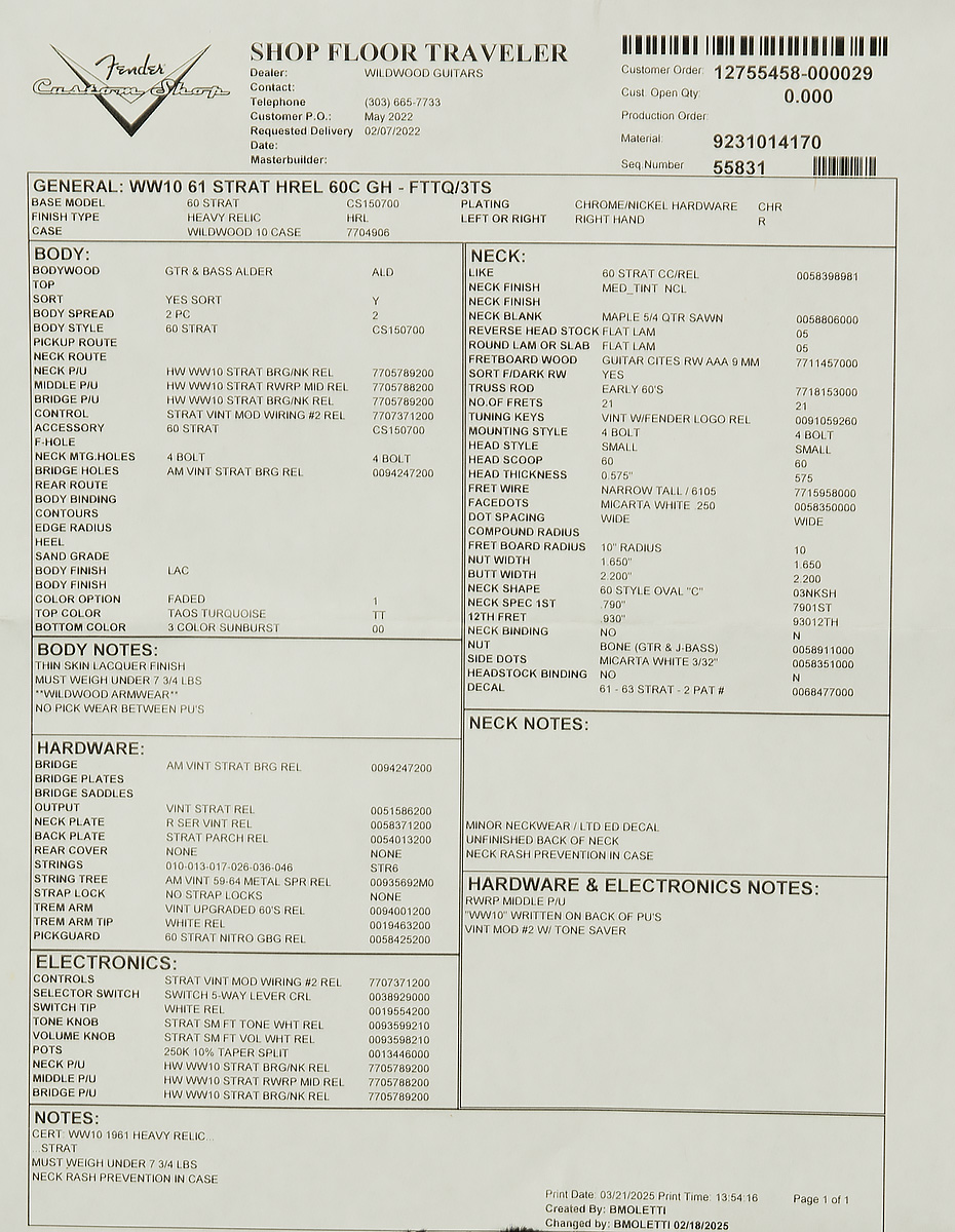 Fender Custom Shop Wildwood 10 1961 Stratocaster – Heavy Relic