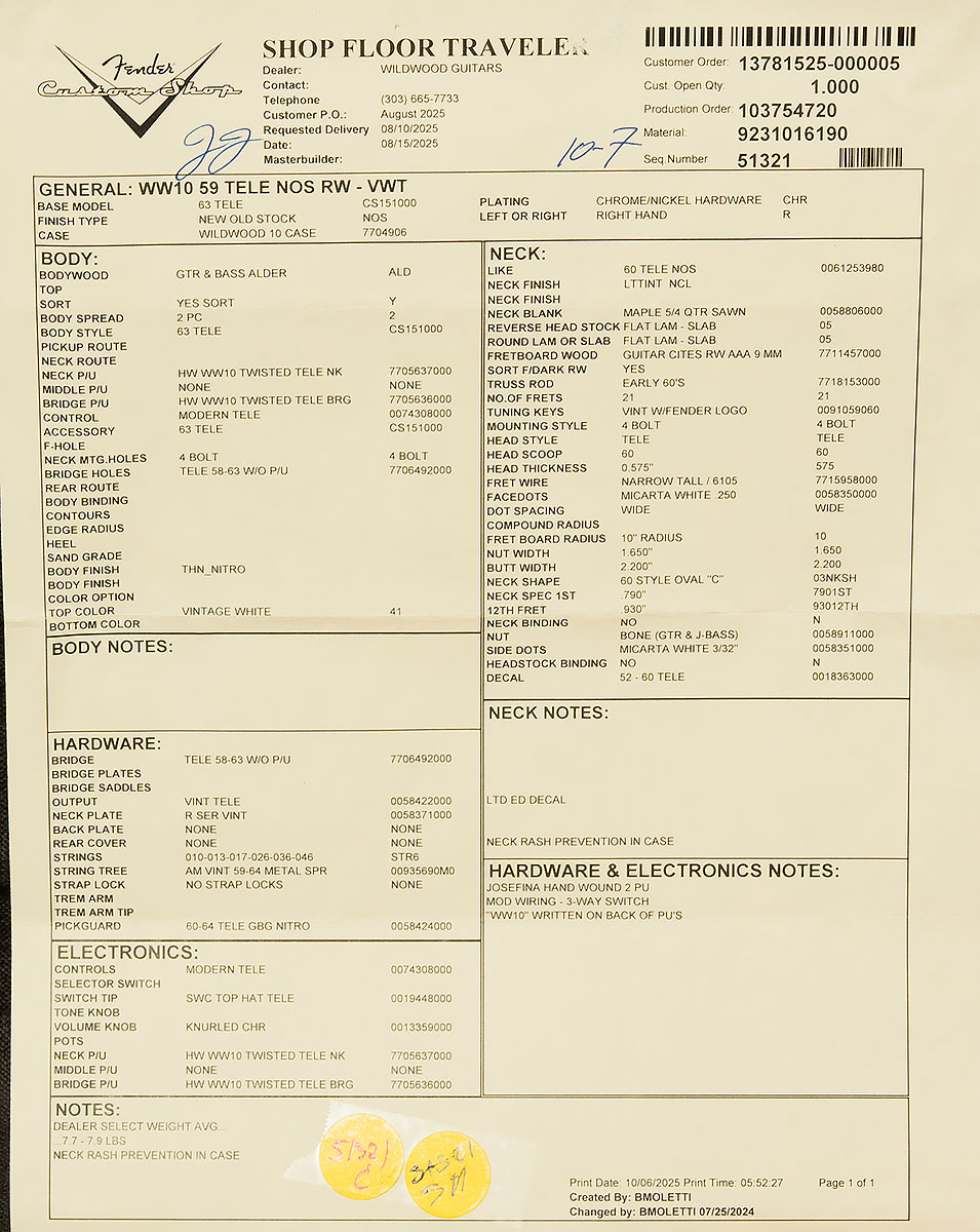 | Model | Dealer Select Wildwood 10 1959 Telecaster |