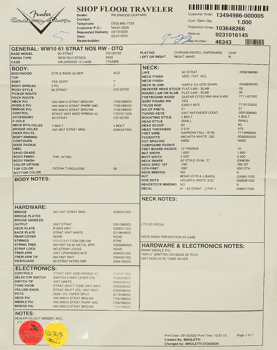 | Model | Dealer Select Wildwood 10 '61 Strat |