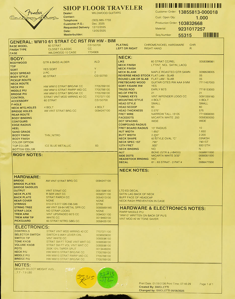| Model | Dealer Select Wildwood 10 '61 Strat |