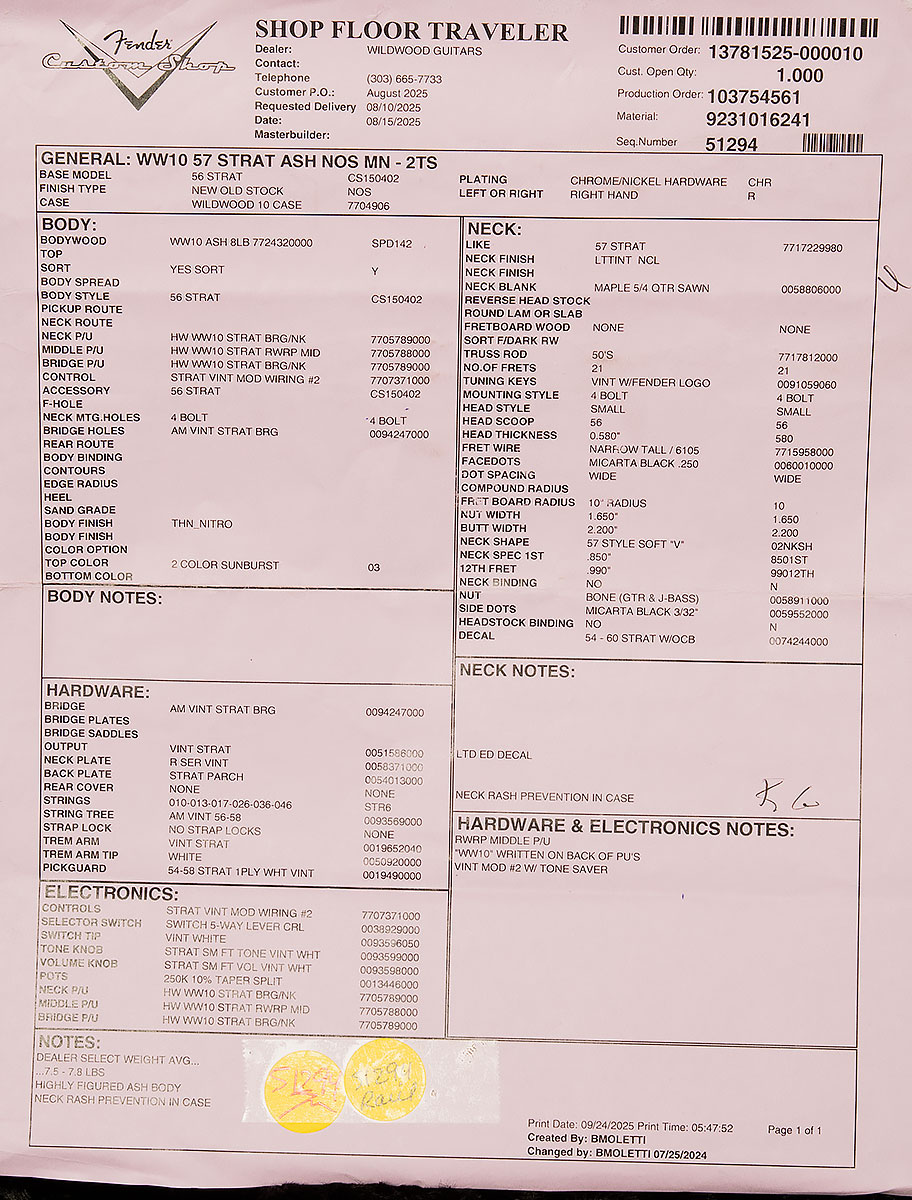 | Model | Dealer Select Wildwood 10 '57 Stratocaster |
