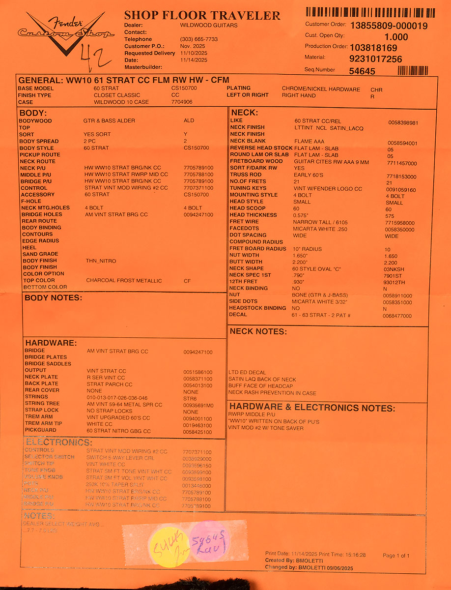 | Model | Dealer Select Wildwood 10 '61 Strat |