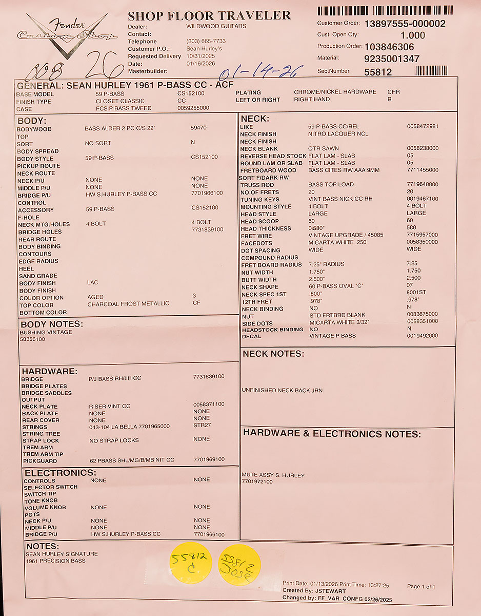 | Model | Sean Hurley Signature 1961 Precision Bass |
