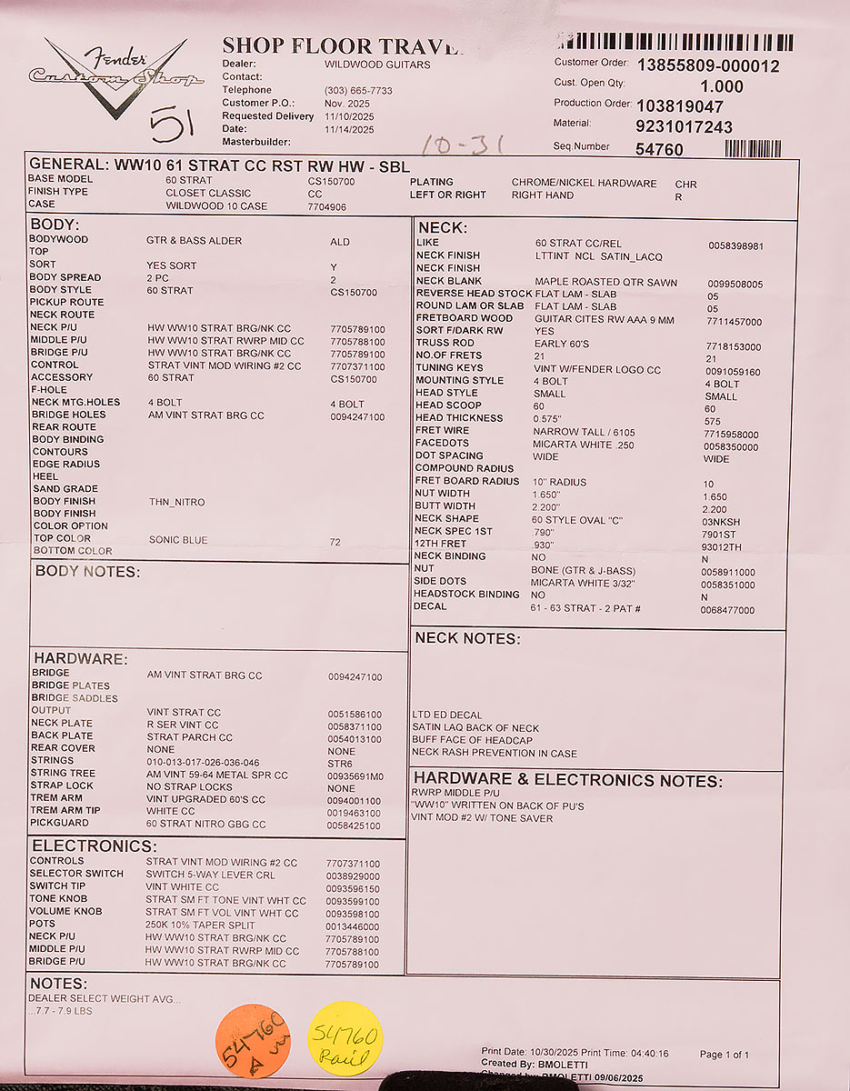 | Model | Dealer Select Wildwood 10 '61 Strat |