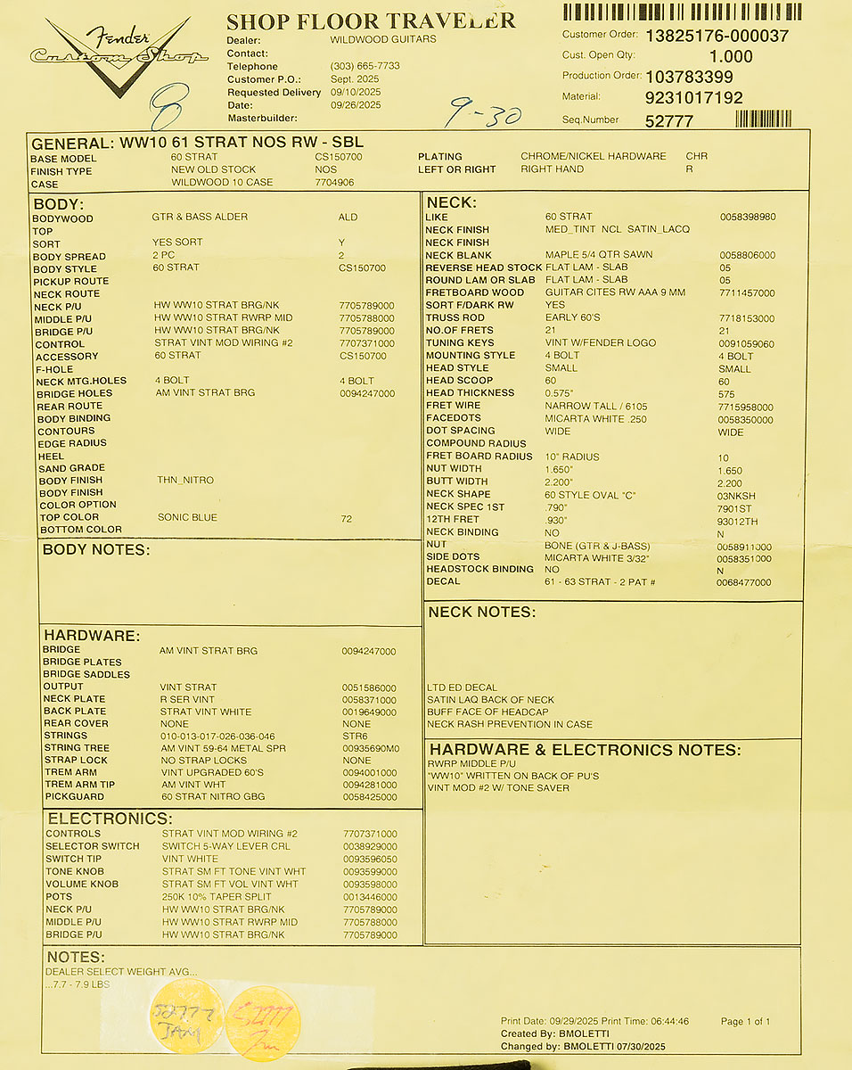 Each of these Custom Shop creations features a thin fifties-style nitrocellulose finish, which allows the voice of the resonant hand-selected tonewoods to shine through. They also have hand-wound Custom Shop pickups that are sure to inspire you to reach new heights on your sonic journey. Wildwood 10s feel great in your hands, too. Their modern 10” radius is suitable for a wide variety of styles and techniques, and their 6105 narrow-tall frets allow you to expend less energy with your left hand, especially when bending strings. To top it all off, they come with a limited edition Dealer Select Wildwood 10 hardshell case and a certificate of authenticity.