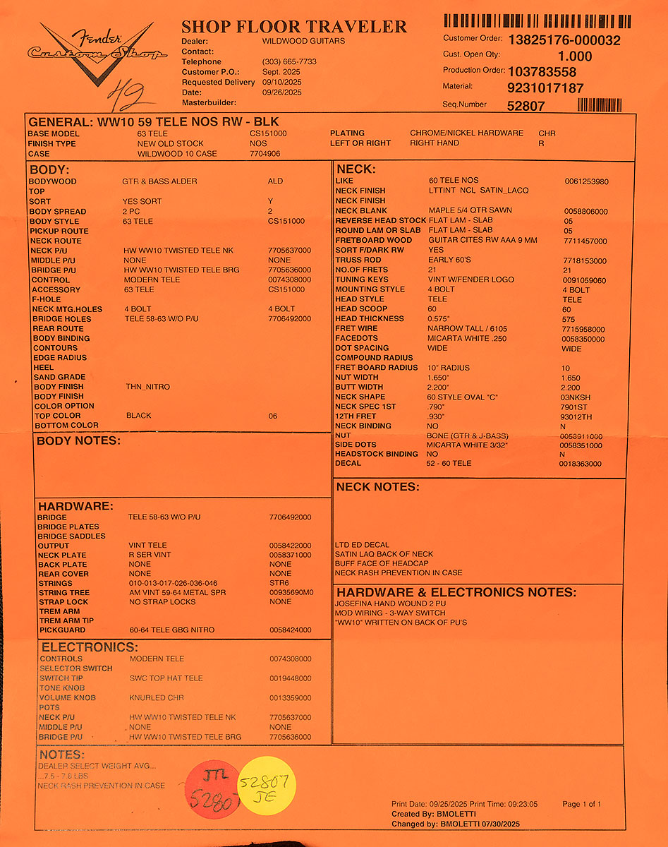| Model | Dealer Select Wildwood 10 1959 Telecaster |