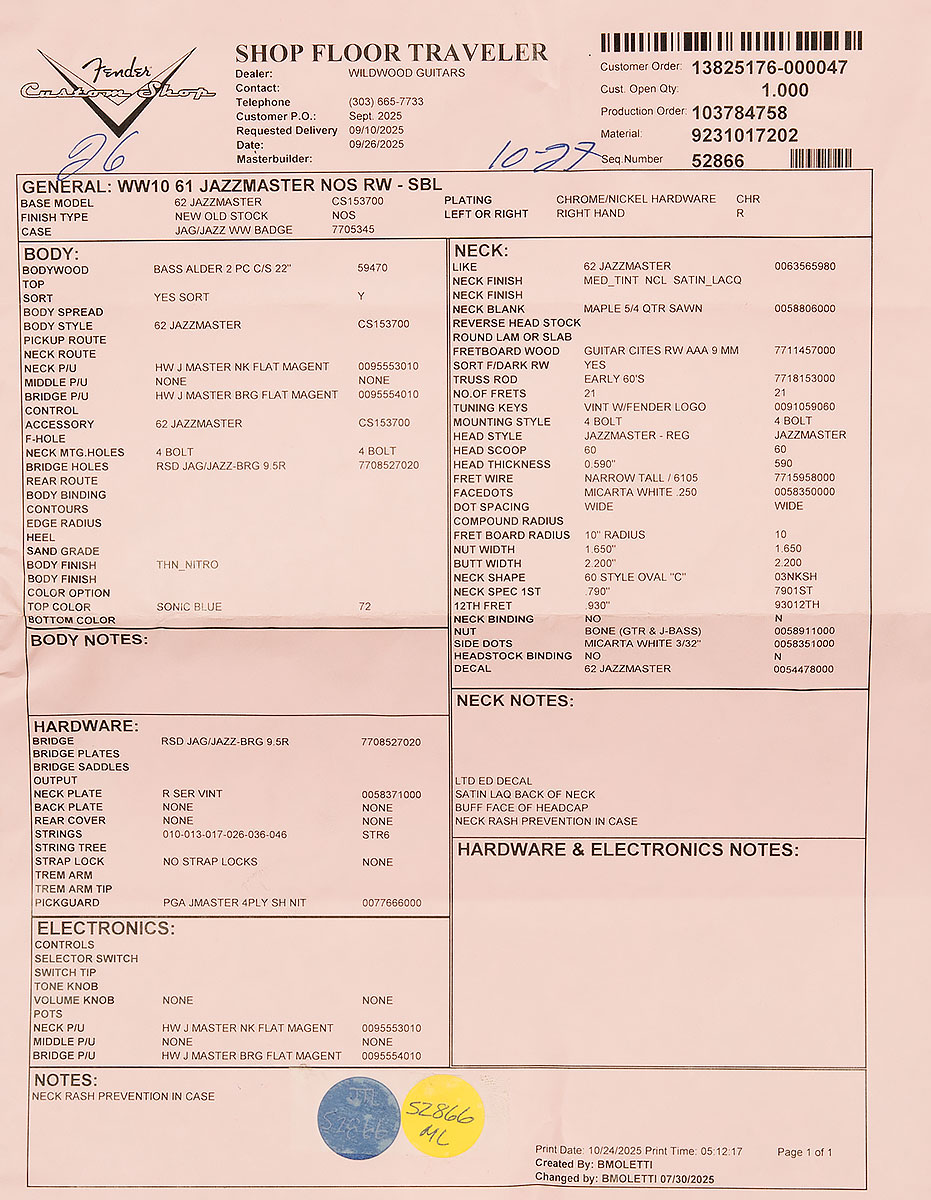 Fender Custom Shop Wildwood 10 1961 Jazzmaster – NOS