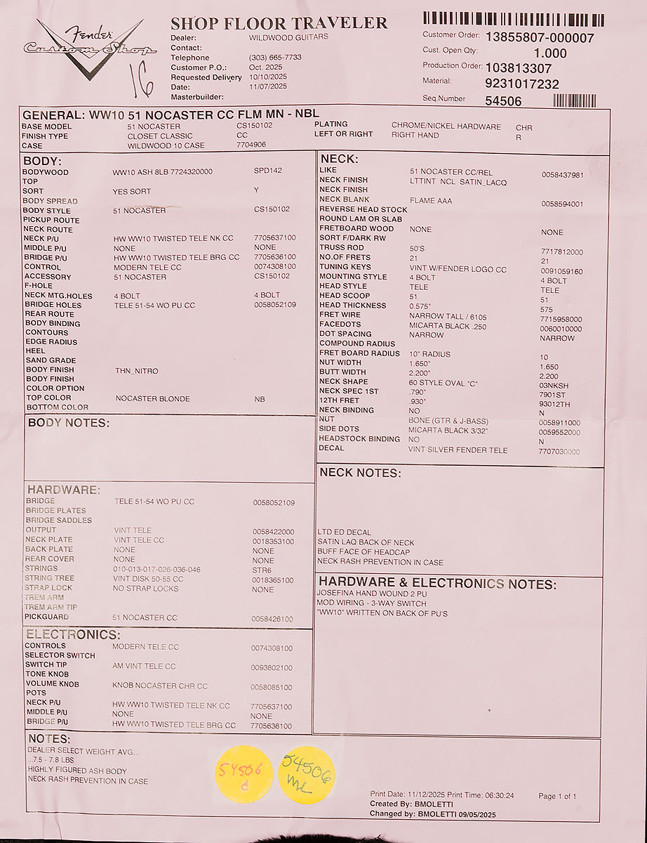 Because of their incredible rarity, original Nocasters have become some of the most desirable vintage pieces out there. So, we decided to team up with our friends at the Fender Custom Shop and issue a Wildwood 10 version that marries the vibe of the originals with modern ergonomics. The Wildwood-exclusive 10″ radius and 6105 frets are a perfect pairing with the '60 Oval C profile, and the Custom Shop hand-wound Twisted Tele pickups deliver spectacular sounds. We’re sure you’ll find a Nocaster here that will grab you by your heartstrings, so we invite you to browse away–just make sure your keyboard drool shield is in place!