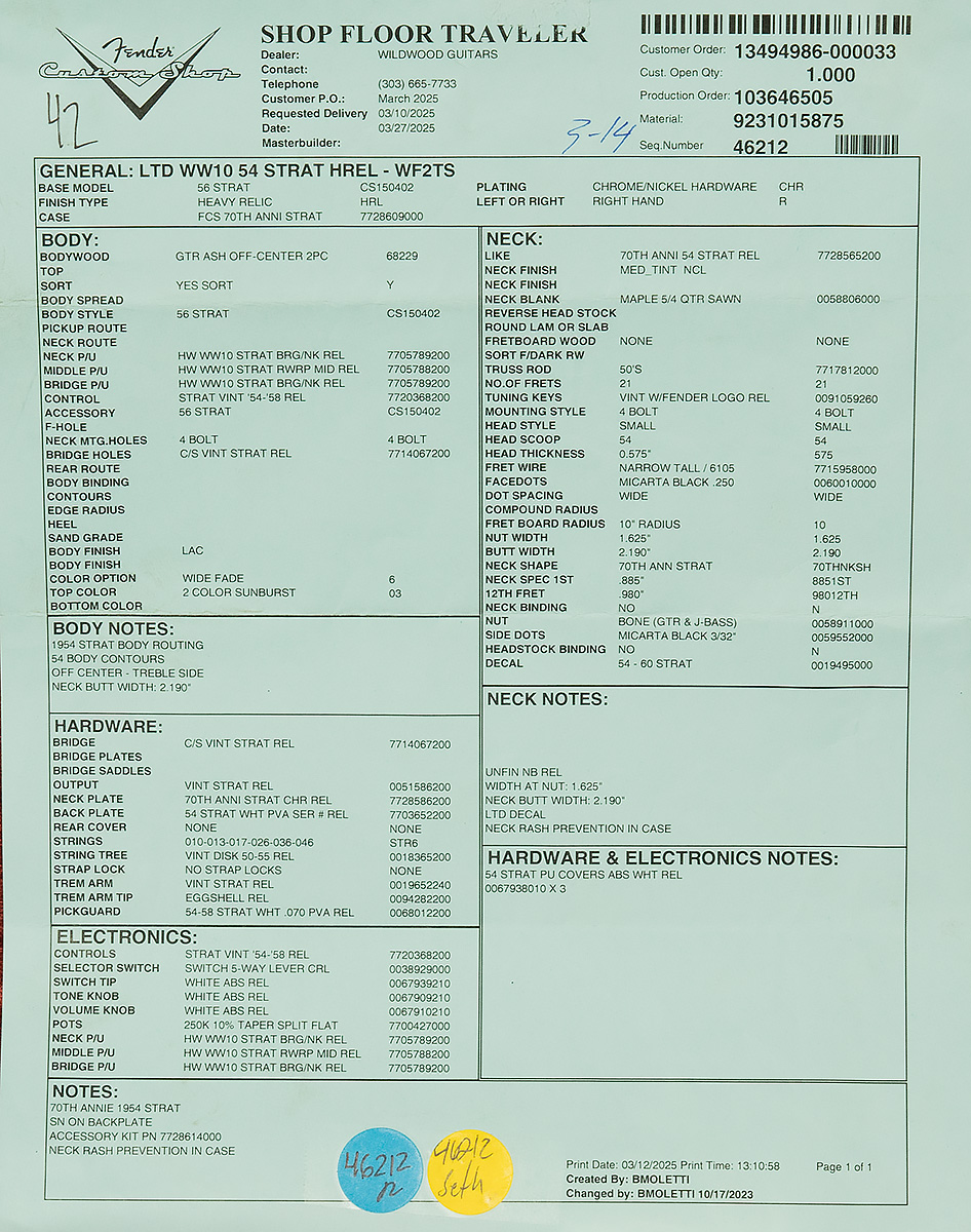 | Model | Ltd. Dealer Select Wildwood 10 70th Anniversary '54 Strat |
