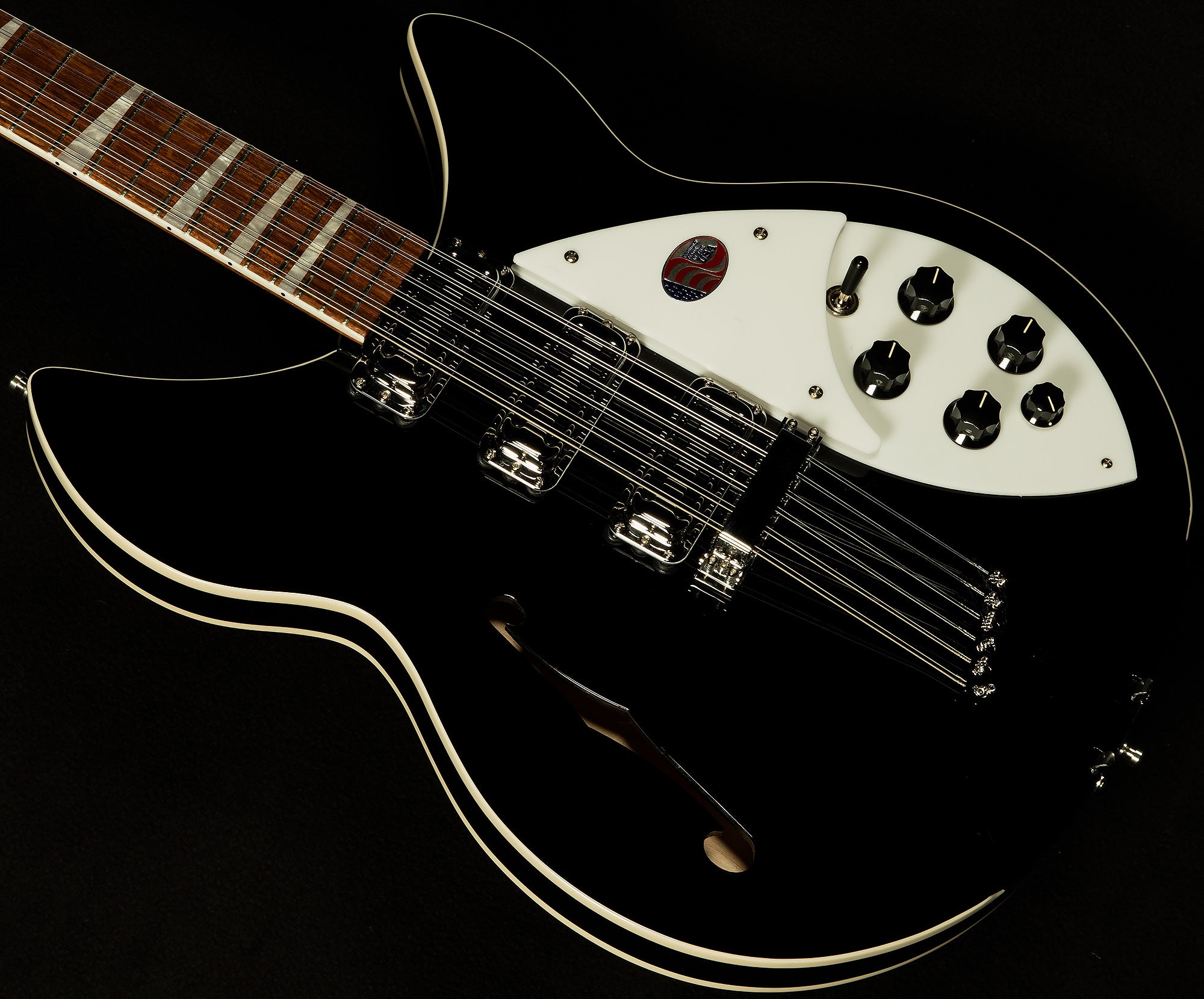 Pete Townshend has been associated with a wide variety of guitars over the course of his storied career, but his story begins with Rickenbackers. Back in the early days of the British Invasion, he could often be seen playing various Rickenbacker six and twelve-string axes that he purchased from a British dealer called Rose Morris (check the iconic "Maximum R&B" poster advertising their gig at the Marquee--he's doing his signature windmill over a Ricky 1998!). Because their bright, jangly sound suited Pete's power chord riffage so well, he chose to record the majority of The Who's early output on his Rickenbackers, too. Rickenbacker has reprised his beloved 1993 from his Mod days, and they have delivered a truly spectacular recreation of one of rock and roll's most important guitars. The 1993Plus sets itself apart from the pack in a variety of ways, but the most important one is the way it feels. Rickenbacker made the neck an eighth of an inch wider at the nut to accommodate players who need wider string spacing for intricate picking patterns, rounded off the neck heel to make it more comfortable to play on the higher frets, and made the neck out of two sturdy pieces of maple instead of one to promote greater stability. They've also dropped in three vintage-style toaster pickups to achieve authentic old-school sounds, and added in an x-bracing pattern to bring out a bit more warmth and roundness from the maple body. Of course, it doesn't hurt that these 1993s look sharp, too! The double-binding on the body really highlights the curves of this iconic shape, and the pearlescent triangle inlays look sharp against the backdrop of the glossy fretboard. It all adds up to a Rickenbacker that embodies the spirit of Pete Townshend: brash, full of attitude, and ready for any musical adventure that comes its way. Wildwood Guitars is proud to showcase the Rickenbacker 1993Plus for our exceptional customers, and we can't wait to see how they inspire you to rock out (just promise us that you'll be nicer to them than Pete was to his!).