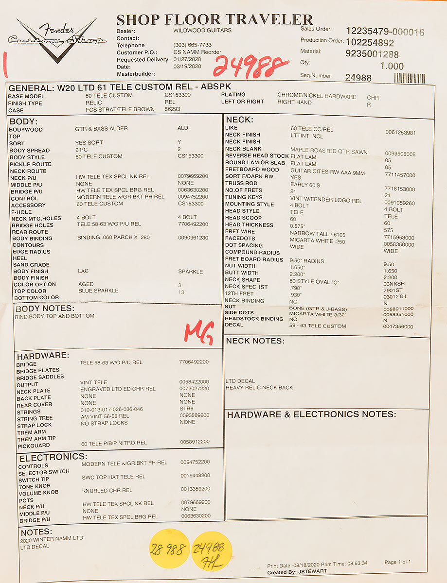 This sparklicious (is that a word? It is now!) Tele is in fantastic shape! It shows barely any signs of use and it has no cosmetic flaws to speak of. It comes with its original hardshell case and a certificate of authenticity, too! The Picture of Perfection