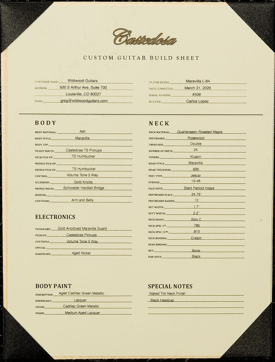 Wildwoodians, every once in a while we come across a guitar builder with such singular vision and incredible creativity that we can't help ourselves. The guitar arrives and all activity in the shop ceases as we all crowd around the case and create a chorus of oohs and ahhs. That was the case when this Maravilla L-84 arrived from our friends at Castedosa guitars.