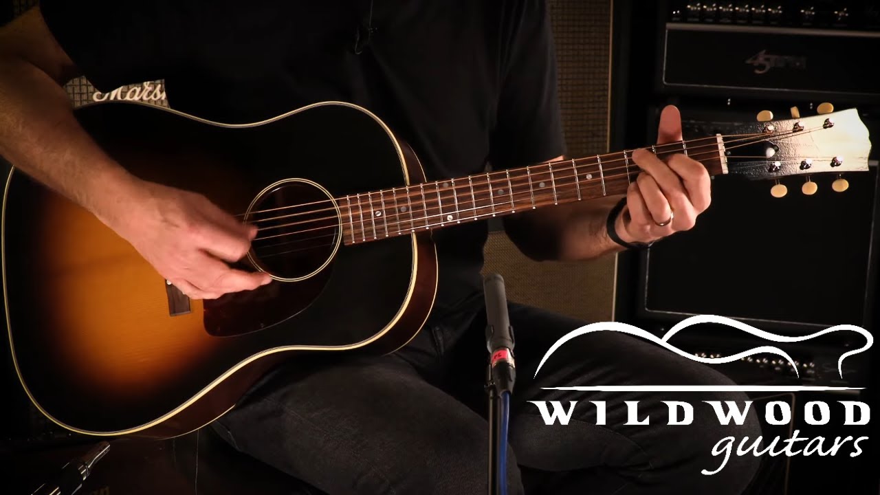 Of course, since John Thomas's book brought them back into the spotlight, the price of Banner Gibsons has been on a steady rise. Thankfully, our friends at Gibson have built these wonderful recreations at the Custom Shop in their Bozeman plant. Using old-world manufacturing techniques and top-notch tonewoods, the master luthiers of Montana have captured the magic and mojo of the banner-era Gibsons in a modern package. The top wood is the cornerstone of any acoustic guitar, and Gibson chose to use premium red Adirondack spruce for the 1942 Banner J-45, a move that we wholeheartedly applaud. Here at Wildwood, we love Adirondack spruce's tonal properties the way Kirk Hammett loves wah pedals: truly and deeply, with our entire collective heart. It just gives acoustic guitars a little more of everything: more percussive articulation in the attack, more projecting power, more volume, and more headroom. When paired with mahogany back and sides in these J-45s, it produces a warm, open, full tonality with plenty of midrange punch, and it responds equally well to subtle, nuanced fingerstyle playing and enthusiastic bluegrass strumming. Adirondack spruce is enticing in an unaltered state, but our friends at Gibson took it a step further by putting it through their thermal engineering process. Basically, they torrify the top by subjecting it to heat in a vacuum, which removes all the moisture from the wood and helps it achieve a cellular structure similar to that of a real old guitar. It imparts a clear, woody character to the guitar's sound, and it also helps the guitar sound open, lively, and three-dimensional. Only a Gibson is Good Enough